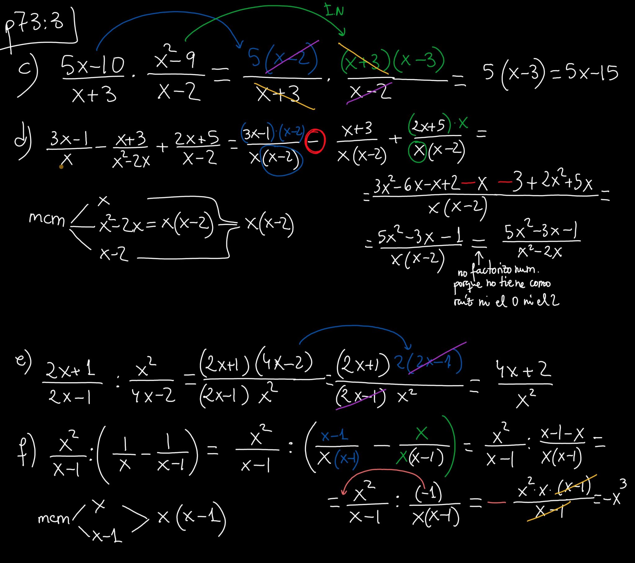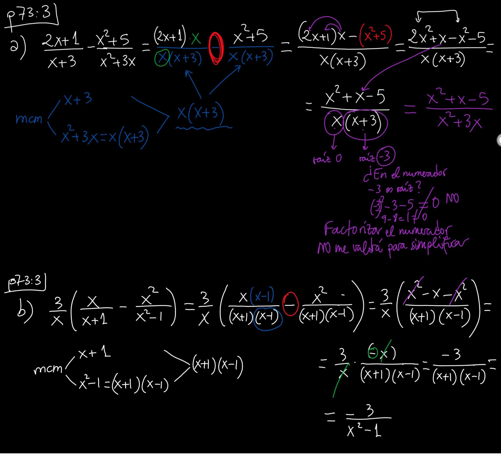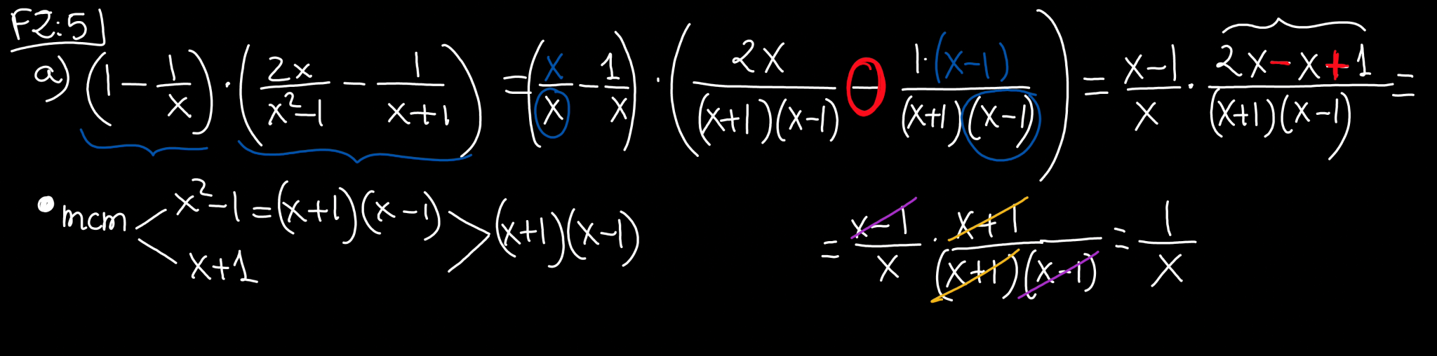 4º.- Sumar/restar los numeradores, manteniendo el denominador común que hemos calculado al principio. Es probable que en este paso, en el numerador común haya que hacer varias multiplicaciones y reducir al final el polinomio del numerador.