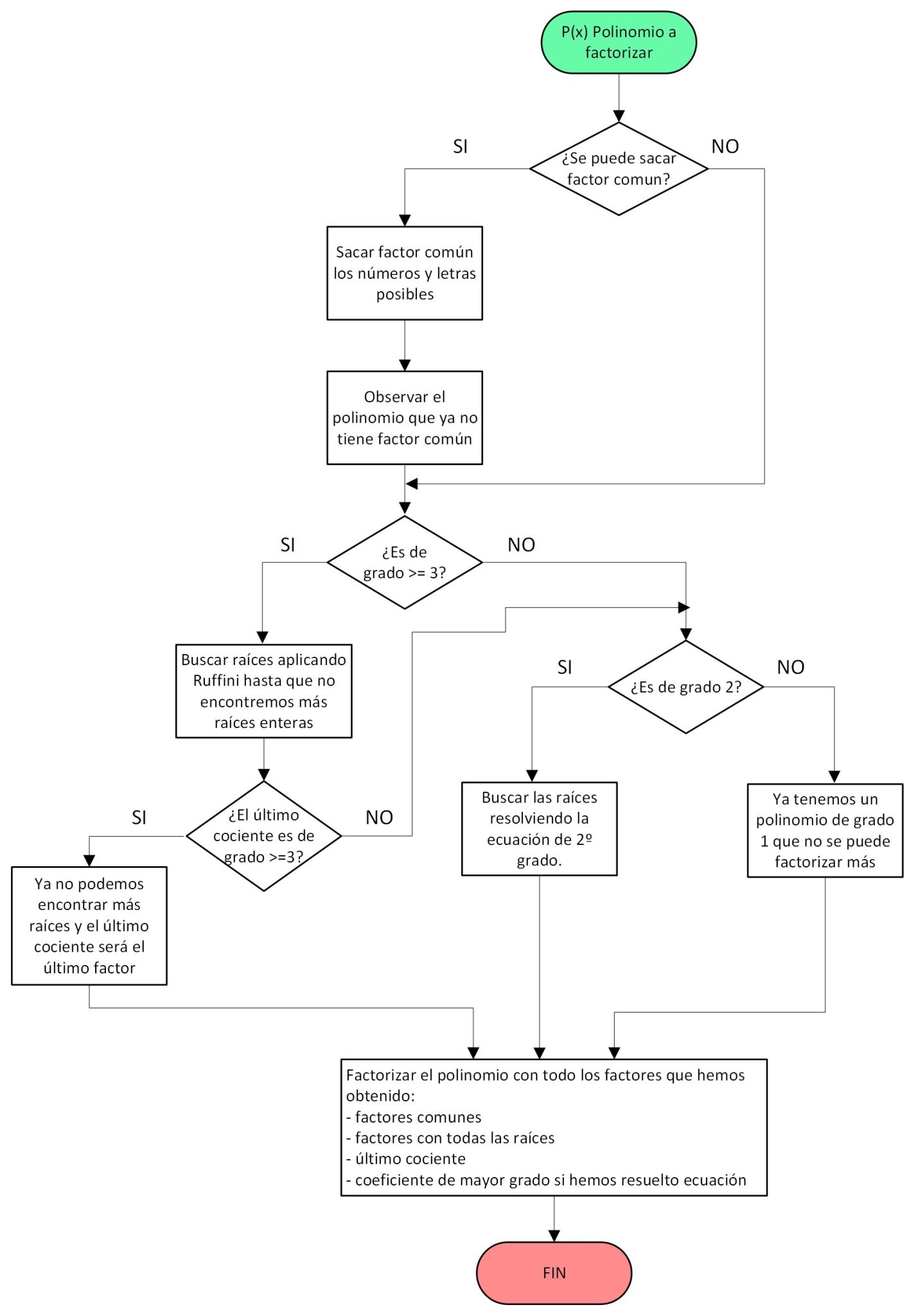 ¿Serías capaz de hacer un diagrama de flujo que refleje los pasos a seguir para factorizar un polinomio?
