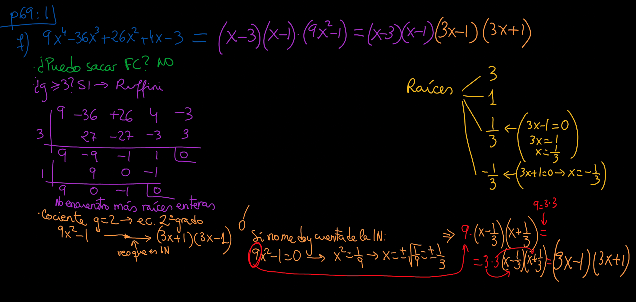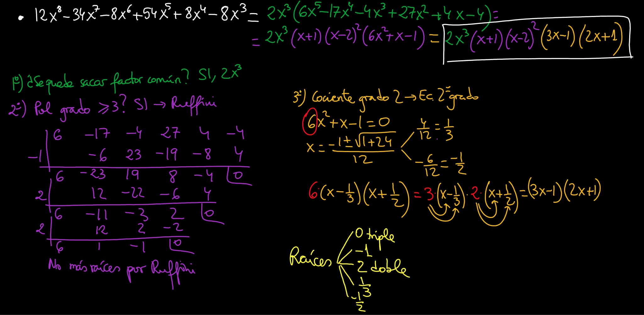- Si encontramos algunas raíces enteras pero no llegamos con Ruffini hasta un cociente de grado 1 ó 0: