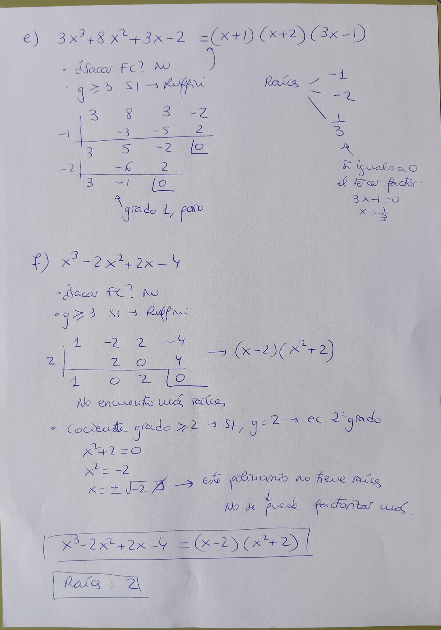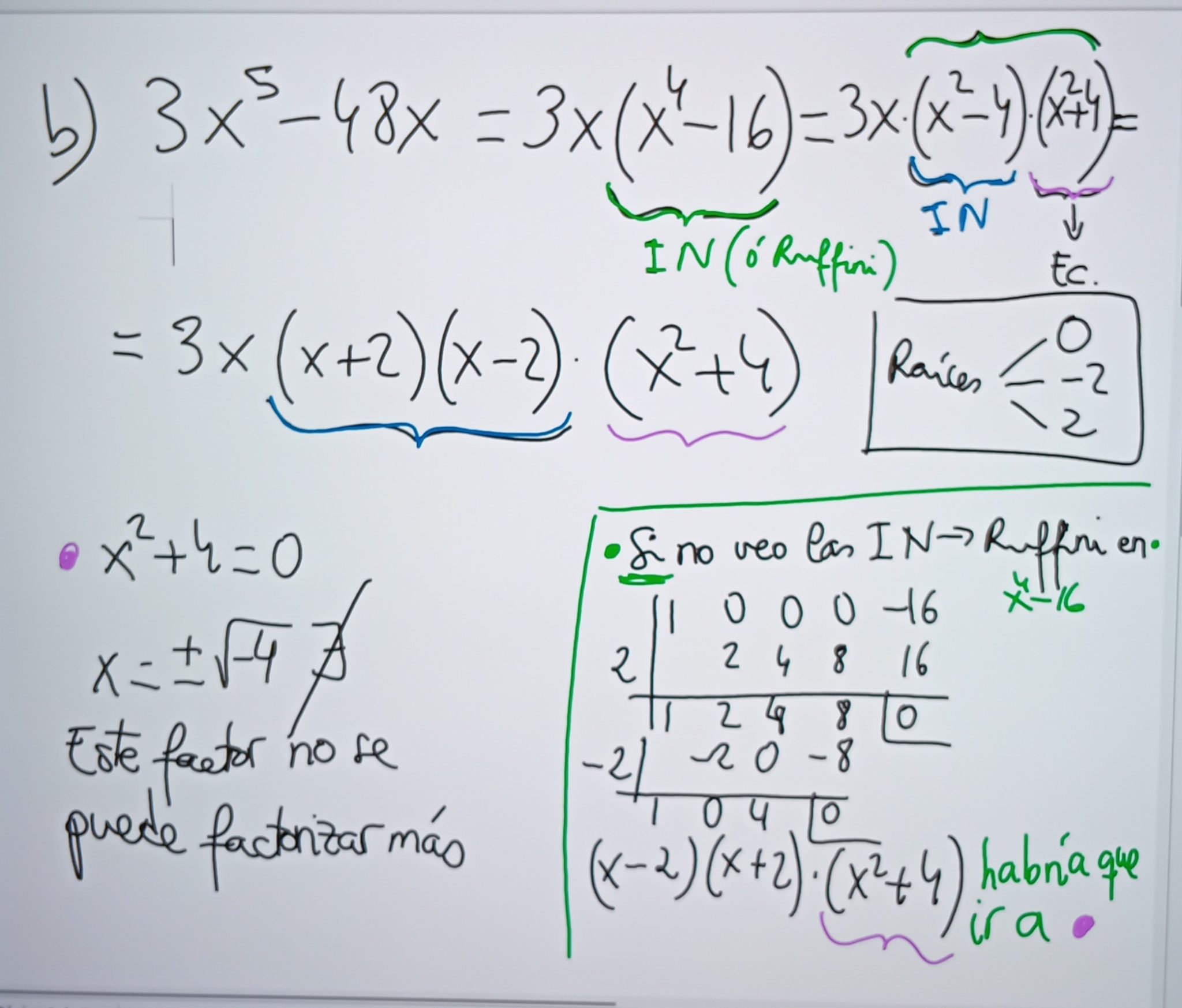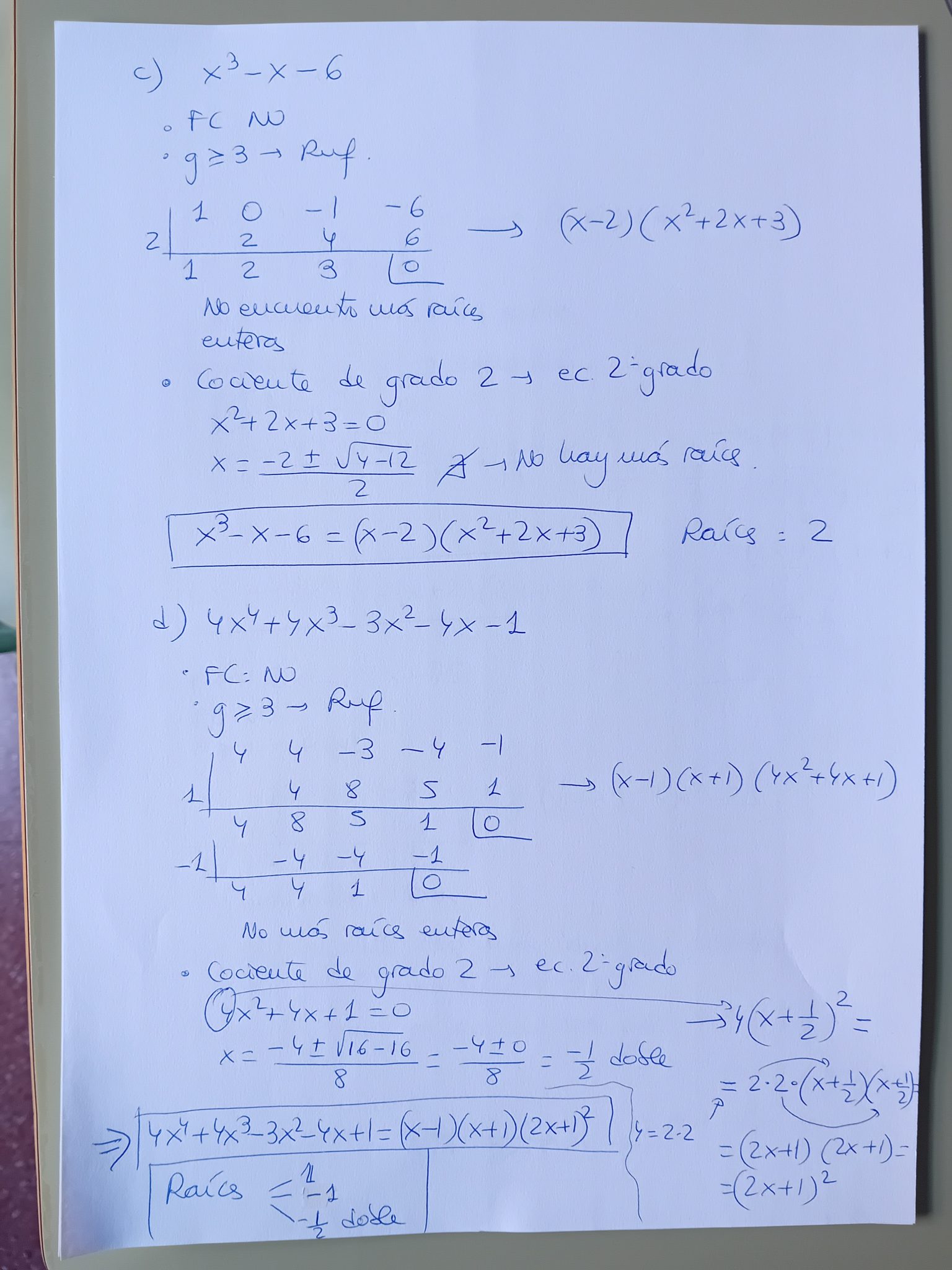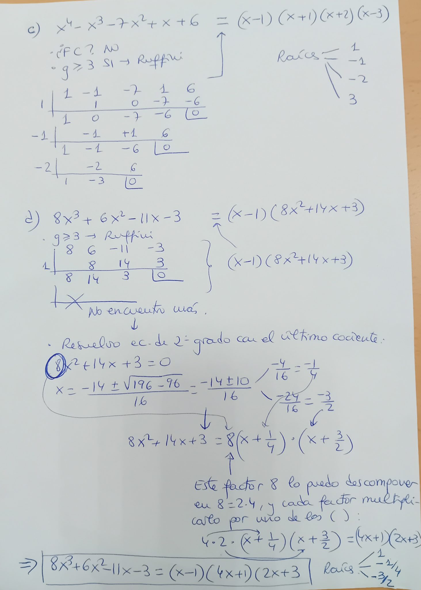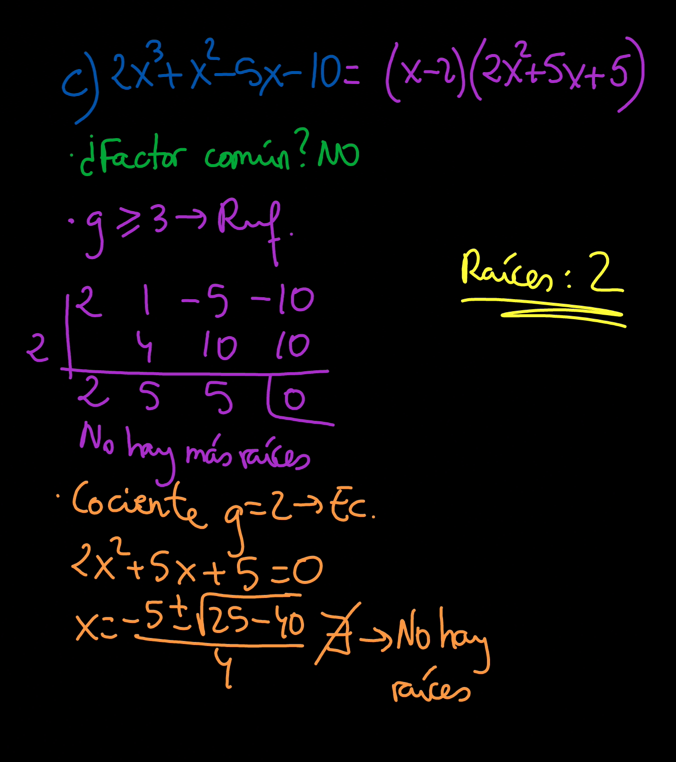 - si el cociente todavía es de grado mayor que 2, factorizaremos con las raíces que hayamos sacado y nos quedará un factor de grado mayor que 2 que no podremos factorizar más.