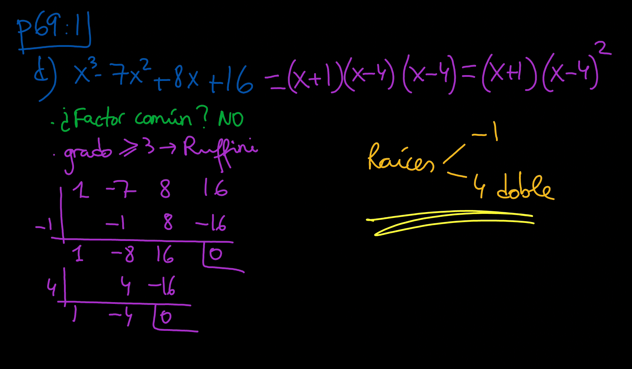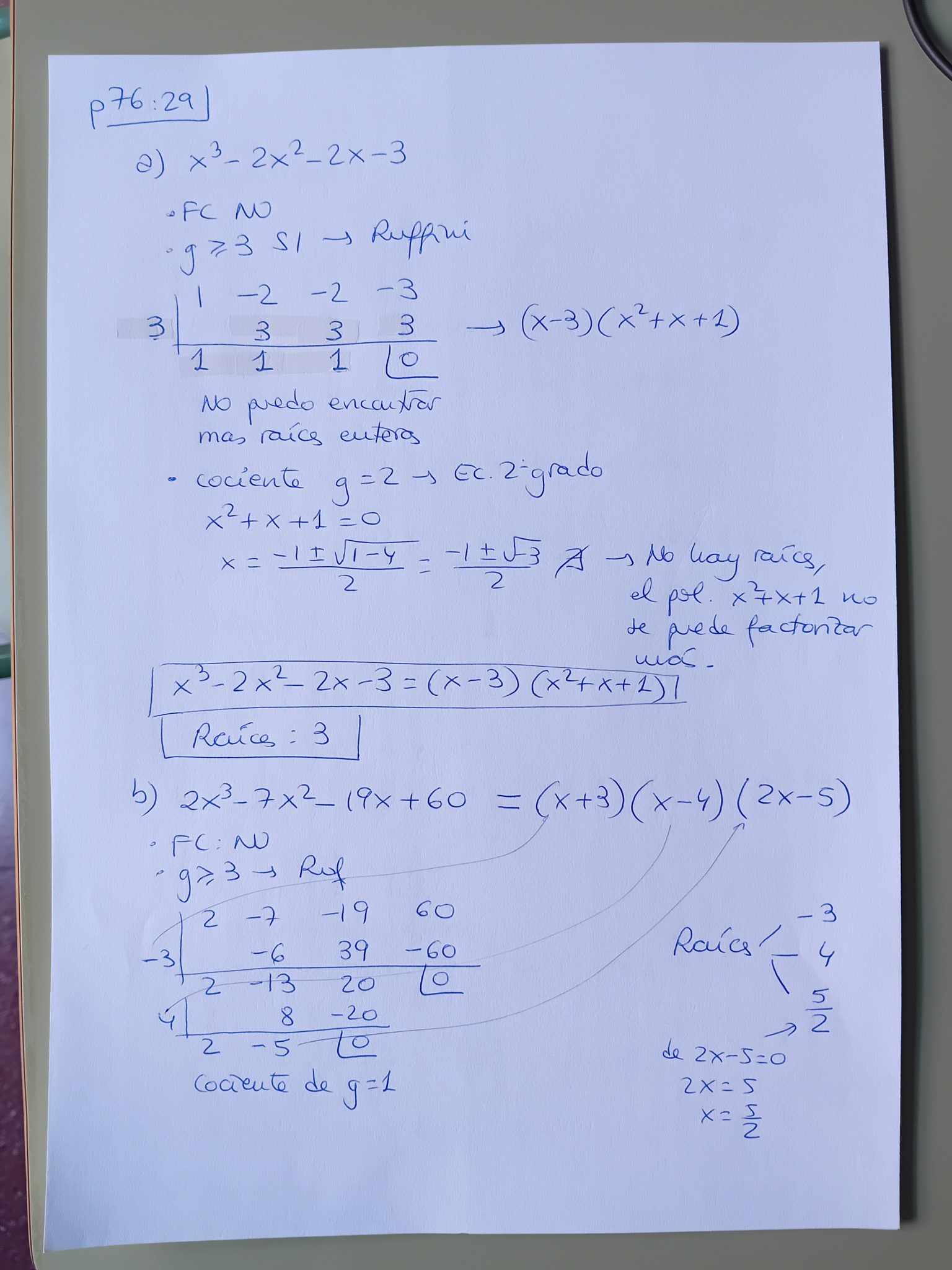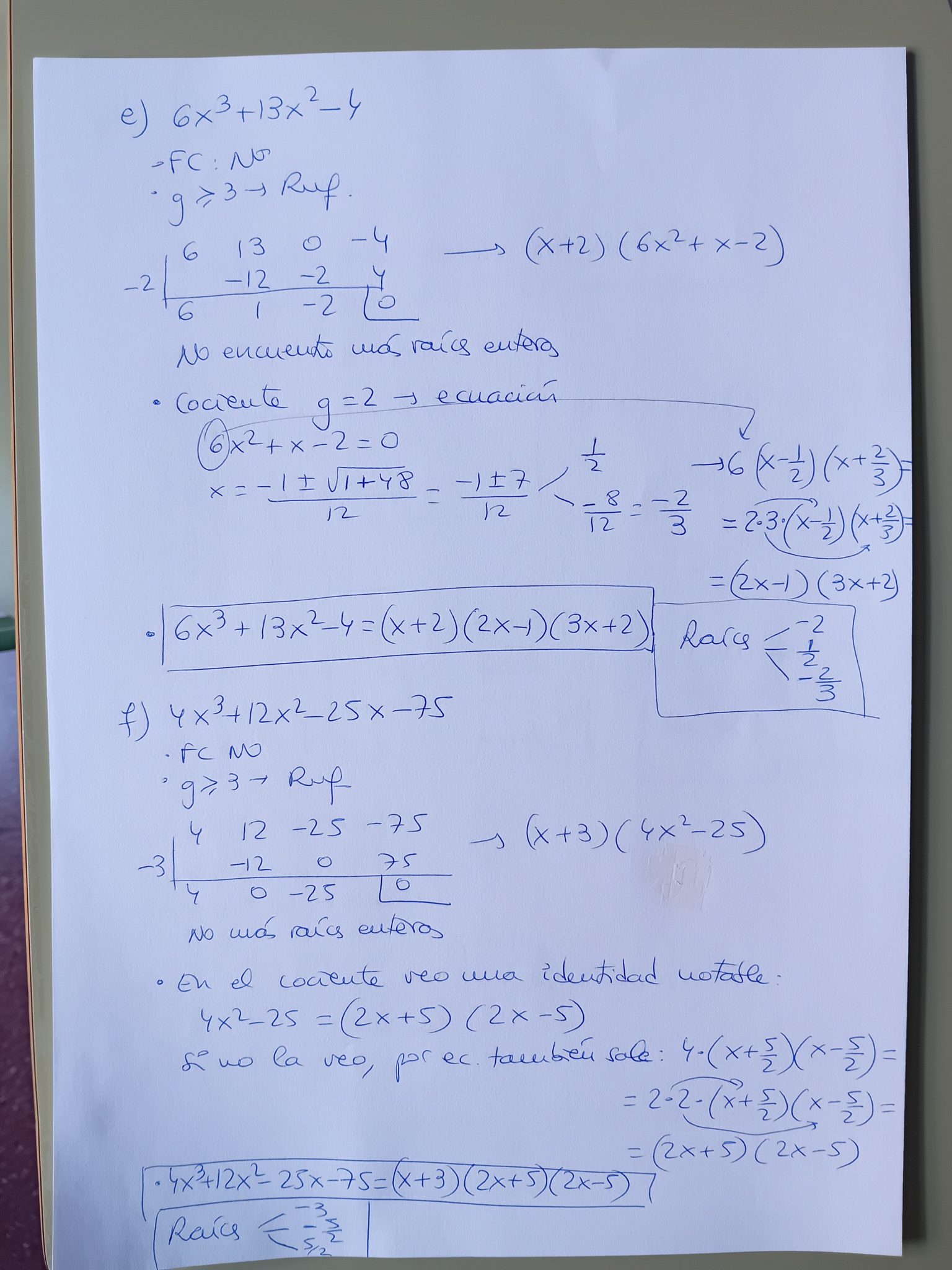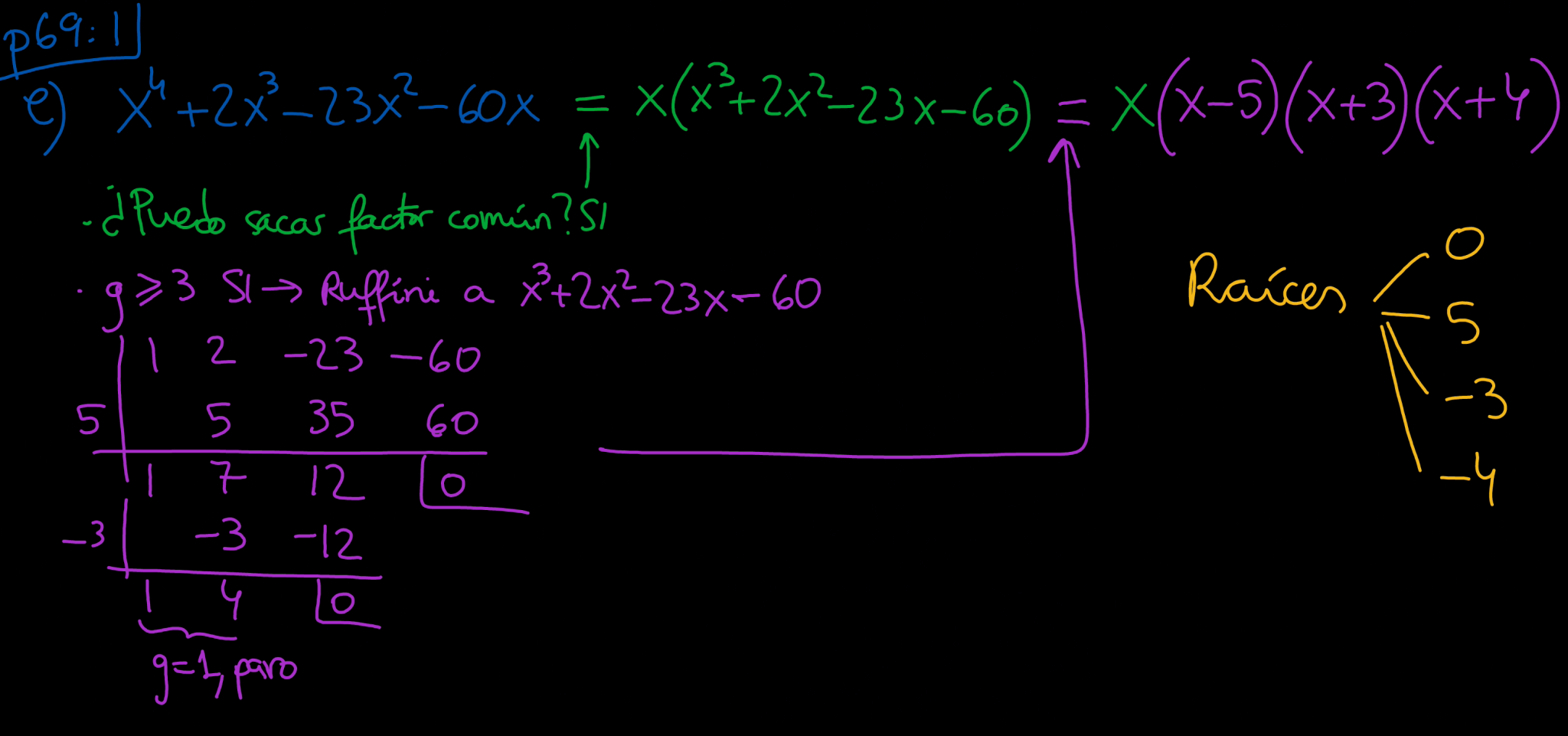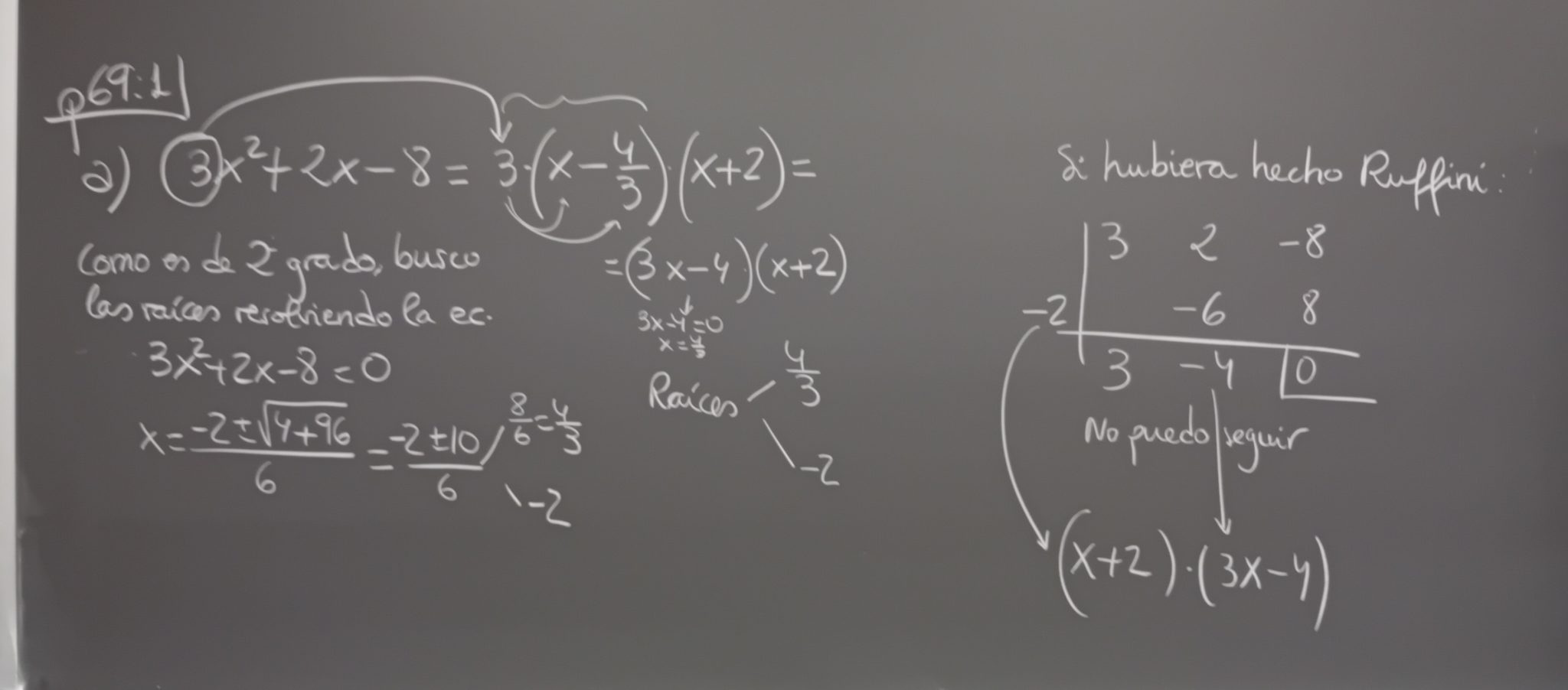 - si el cociente todavía es de grado mayor que 2, factorizaremos con las raíces que hayamos sacado y nos quedará un factor de grado mayor que 2 que no podremos factorizar más.
