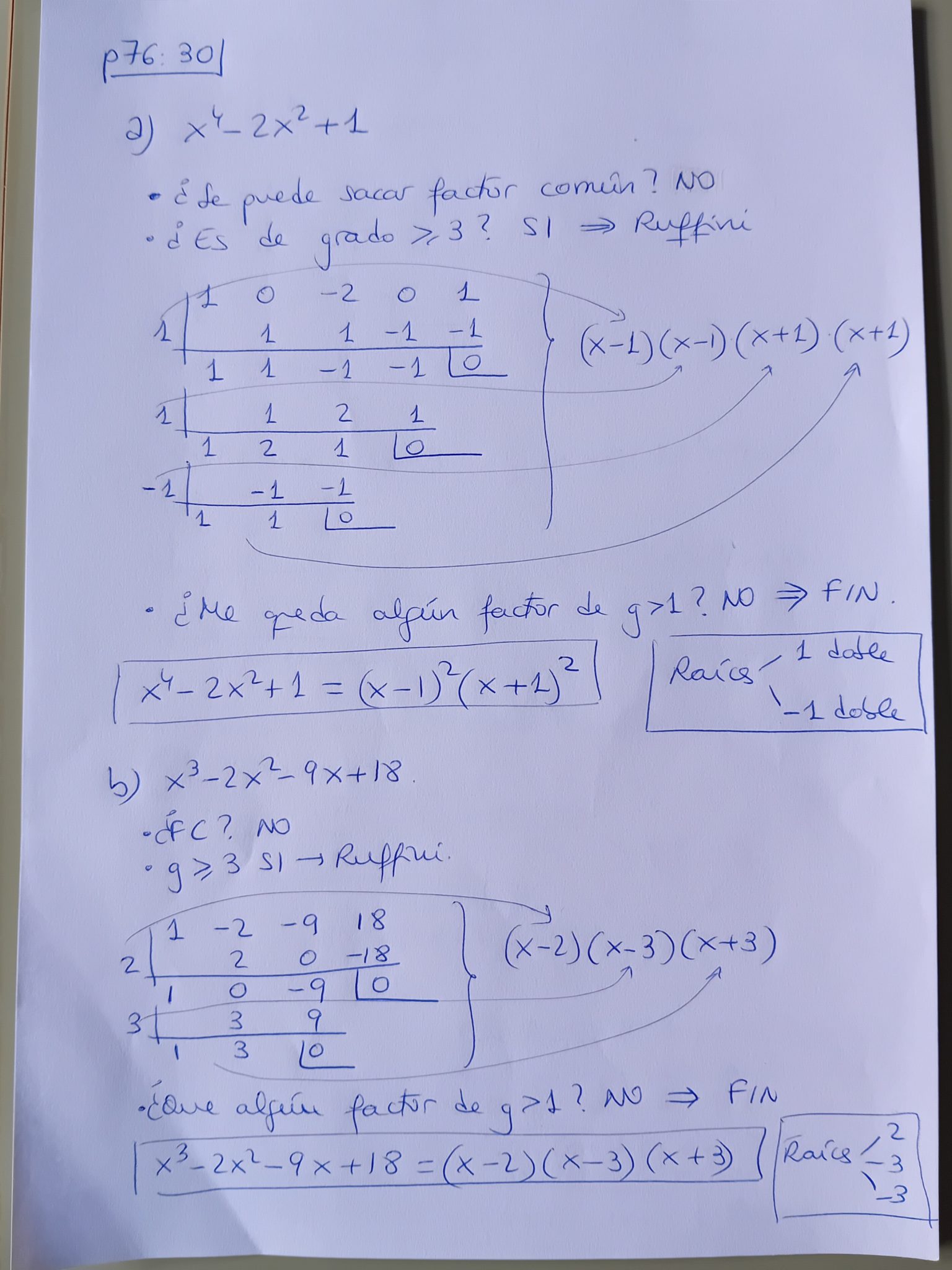 2º.- Sobre el polinomio que ya no tiene ningún factor común, si es de grado mayor que 2, factorizar buscando raíces enteras por Ruffini.