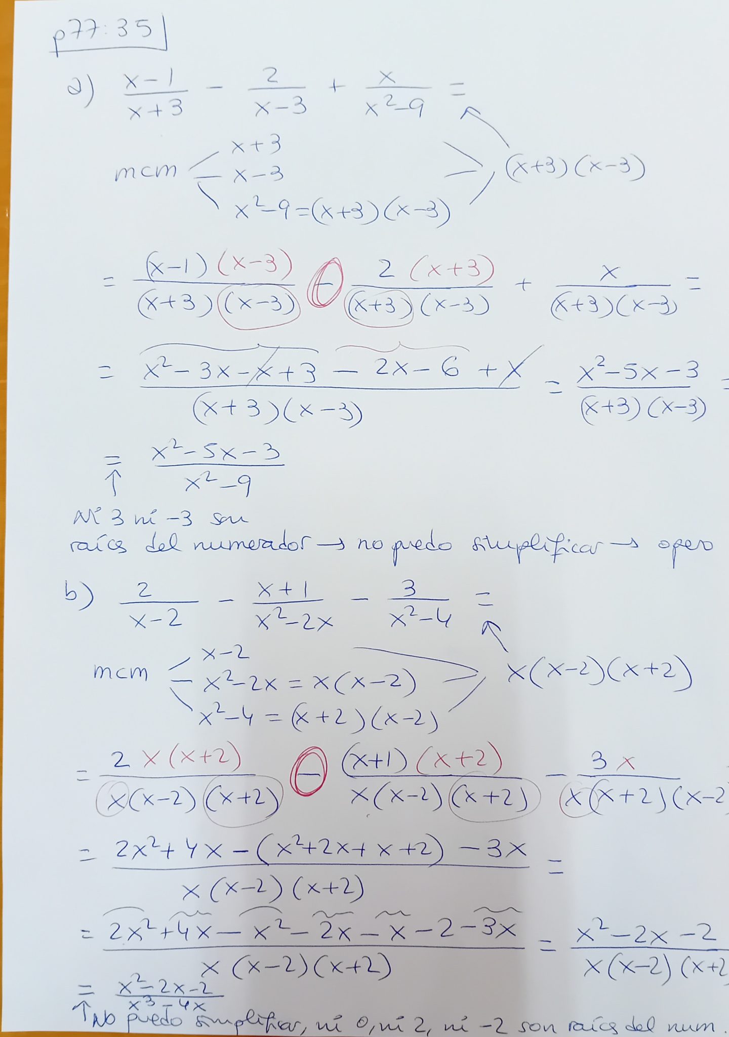 7º.- Una vez está simplificado al máximo, operar el numerador y el denominador para que queden en forma de polinomios (no en factores).