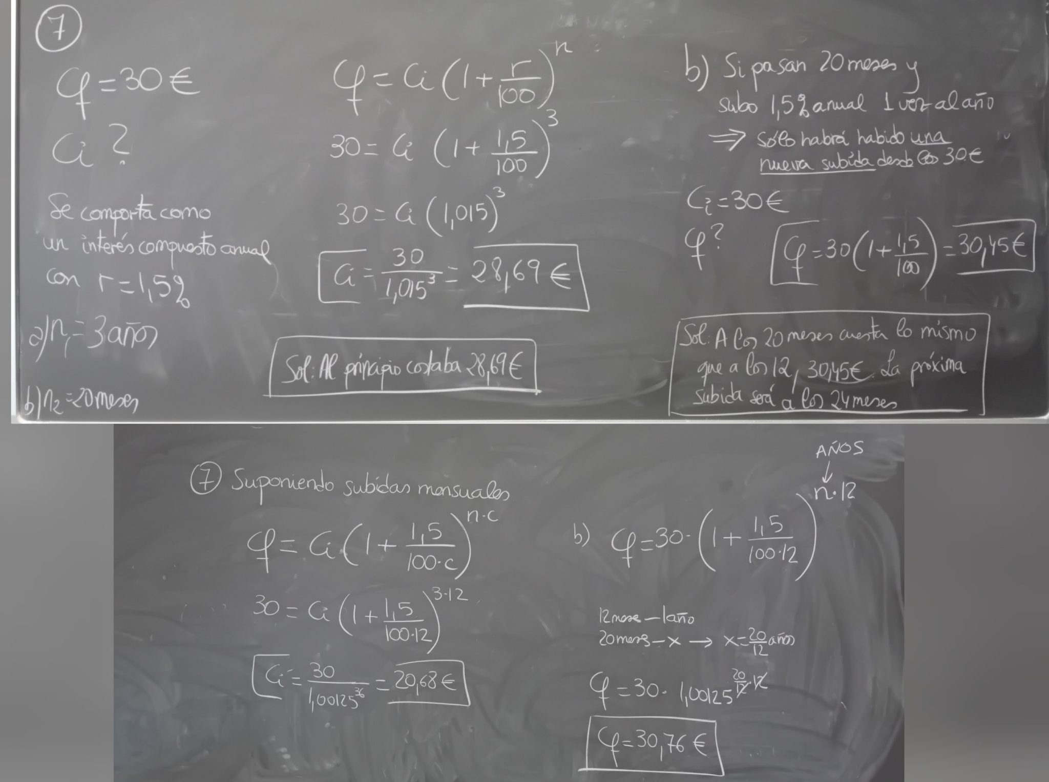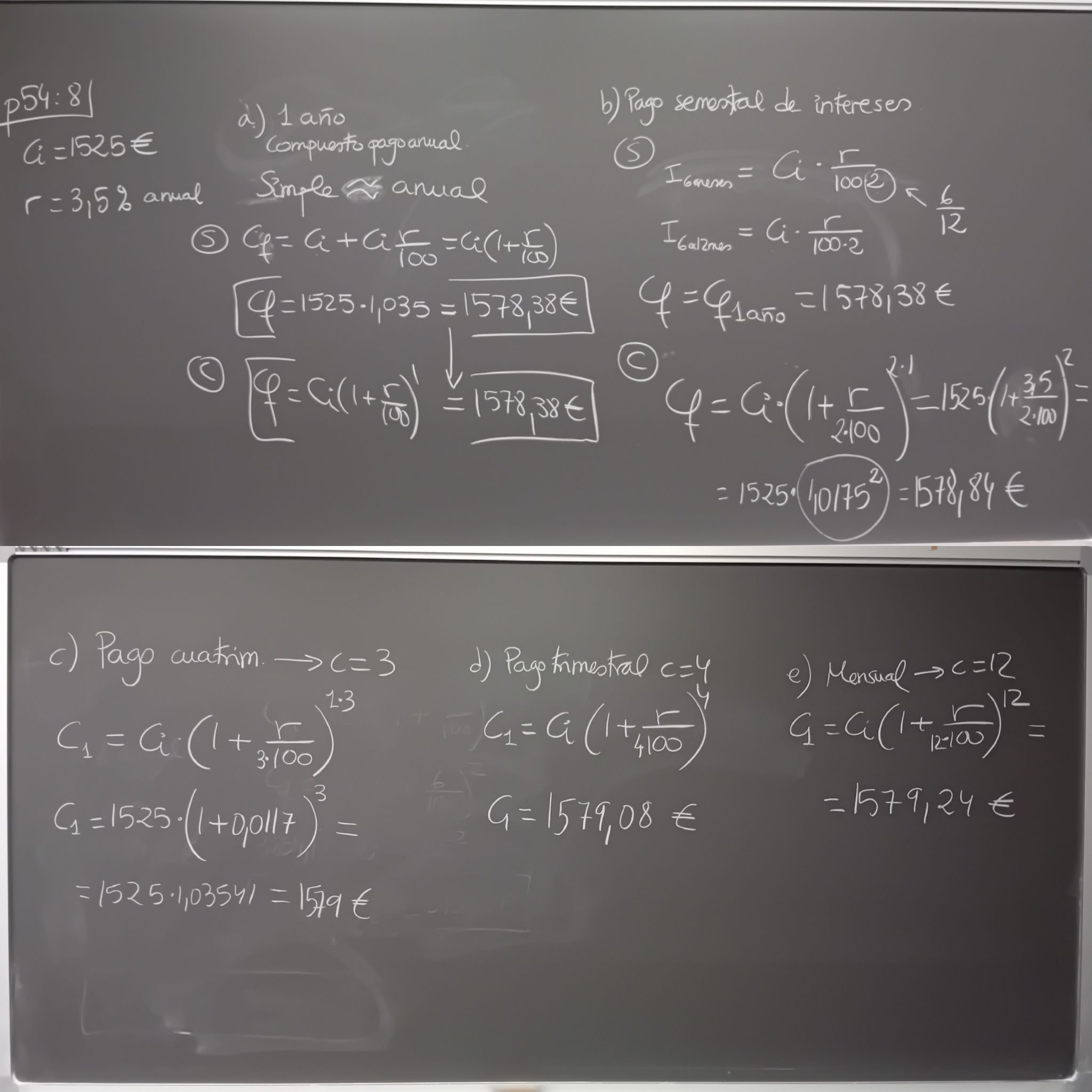 – p54_8 (Modificado el enunciado. Aquí se compara la cantidad al cabo de 1 año con distintos periodos de capitalización anual, semestral, cuatrimestral, trimestral y mensual)