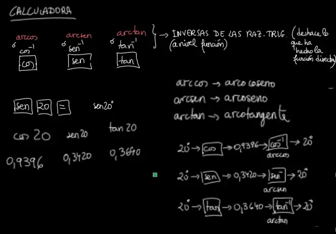 CALCULADORA. INVERSAS DE LAS RAZONES TRIGONOMÉTRICAS