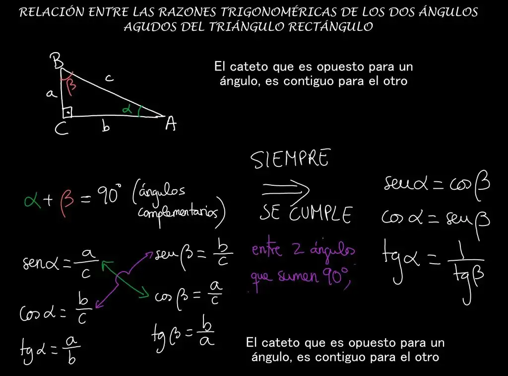 Relación entre las Razones Trigonométricas de los dos ángulos agudos del triángulo rectángulo