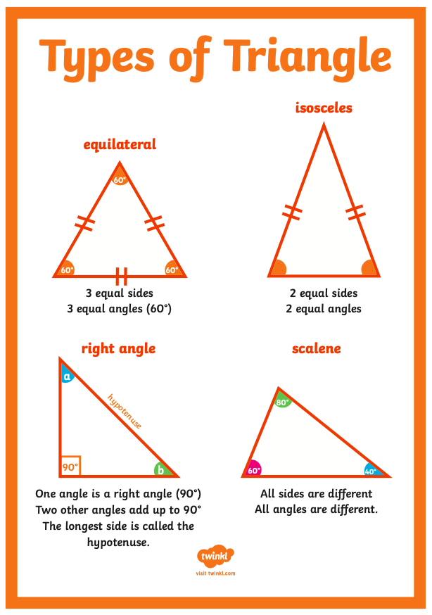 All triangles have 3 sides and 3 angles. The sum of the angles always add up to 180°.