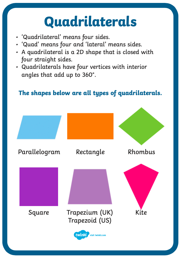 - To use angles and line properties to classify and describe triangles and quadrilaterals.
