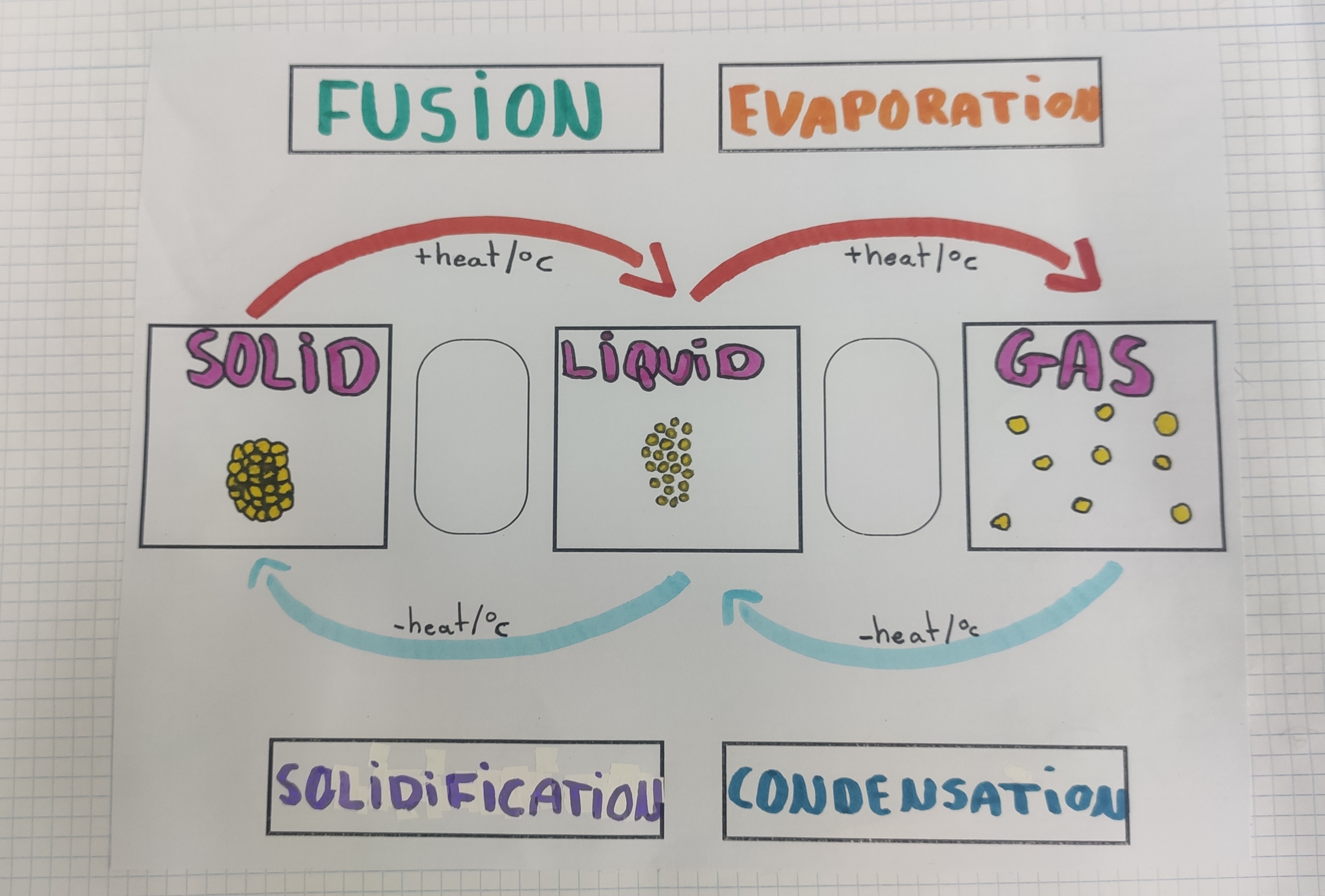 Matter can change its state when we apply a force such as increasing the temperature (heating) or reducing the temperature (cooling).