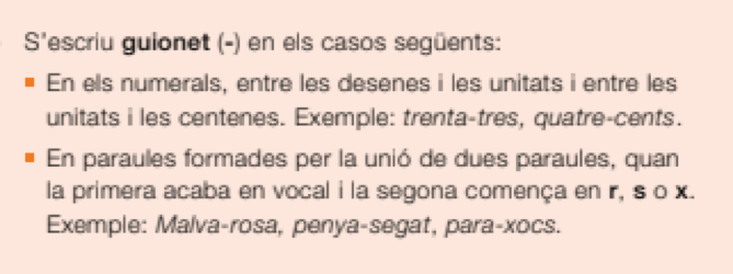 - Llegiu què és el guionet i algunes normes del seu ús. Copieu el requadre de la pàg 142 sobre L’ús del guionet.