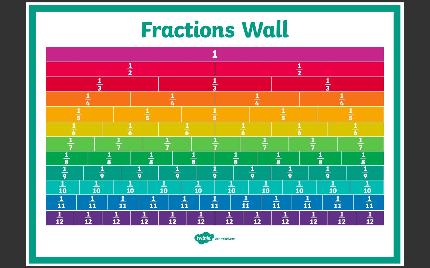 Equivalent fractions can be found by multiplying or dividing both the numerator and the denominator by the same number. Also, a fraction wall is a good way to help us to find equivalent fractions. You can find it attached below if you want to print it out.