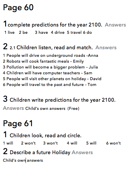 Now it’s time for you to check the activities from class book page 60 and 61. Here you have the answers.
