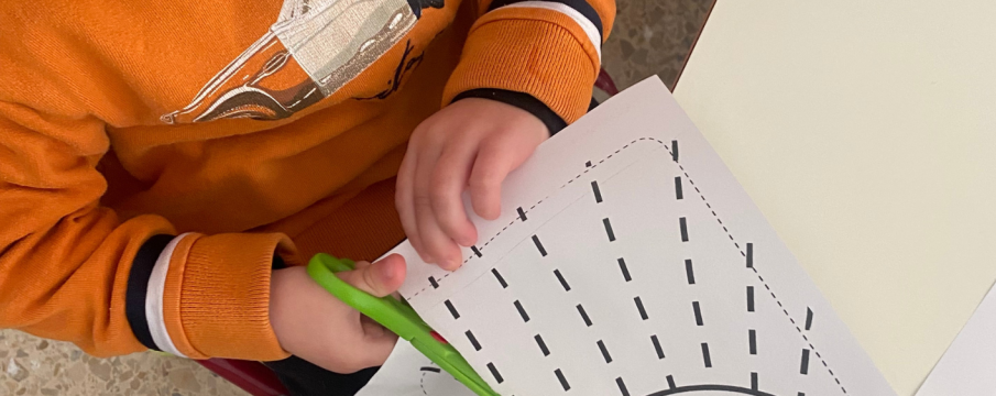 Estamos trabajando con las tijeras para reforzar la motricidad fina. Comenzamos con actividades previas como rasgar papel, puntear y utilizar el punzón, lo que ayuda a preparar la coordinación
