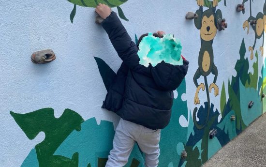 Aprovechando que tenemos el rocódromo en la puerta del aula, contamos con un recurso excepcional para estimular tanto el desarrollo físico como el cognitivo de los niños. Este espacio les permite