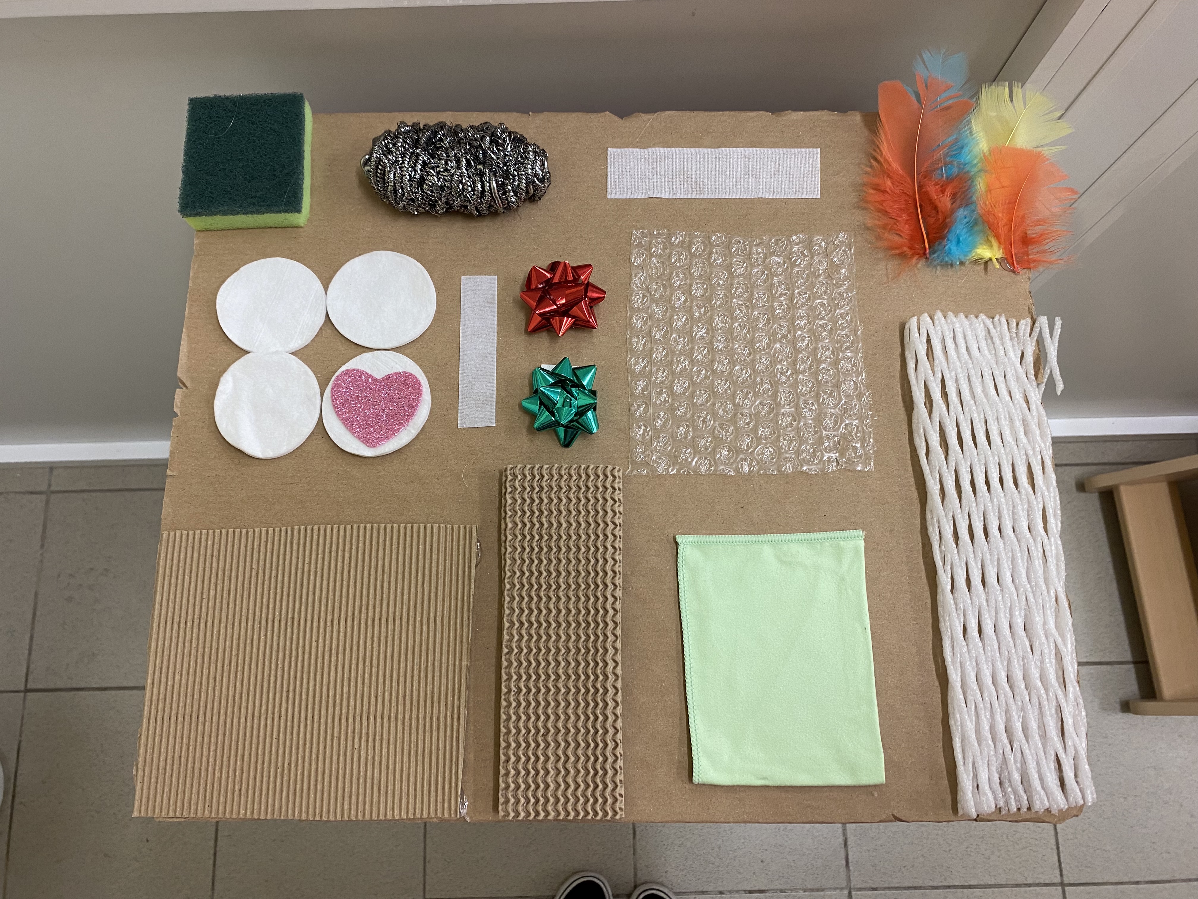Durante todo el curso trabajamos nuestro cuerpo. Conocemos las partes del cuerpo con canciones como “El cos“; nos iniciamos en la construcción del esquema corporal con el cuento “Le pondremos un bigote” i actividades de psicomotricidad; trabajamos el reconocimiento de emociones y sentimientos durante el dia a dia y con el cuento “El meu primer emocionómetre”; y por supuesto, trabajamos los sentidos! Aquí os mostramos nuestro panel sensorial del tacto.