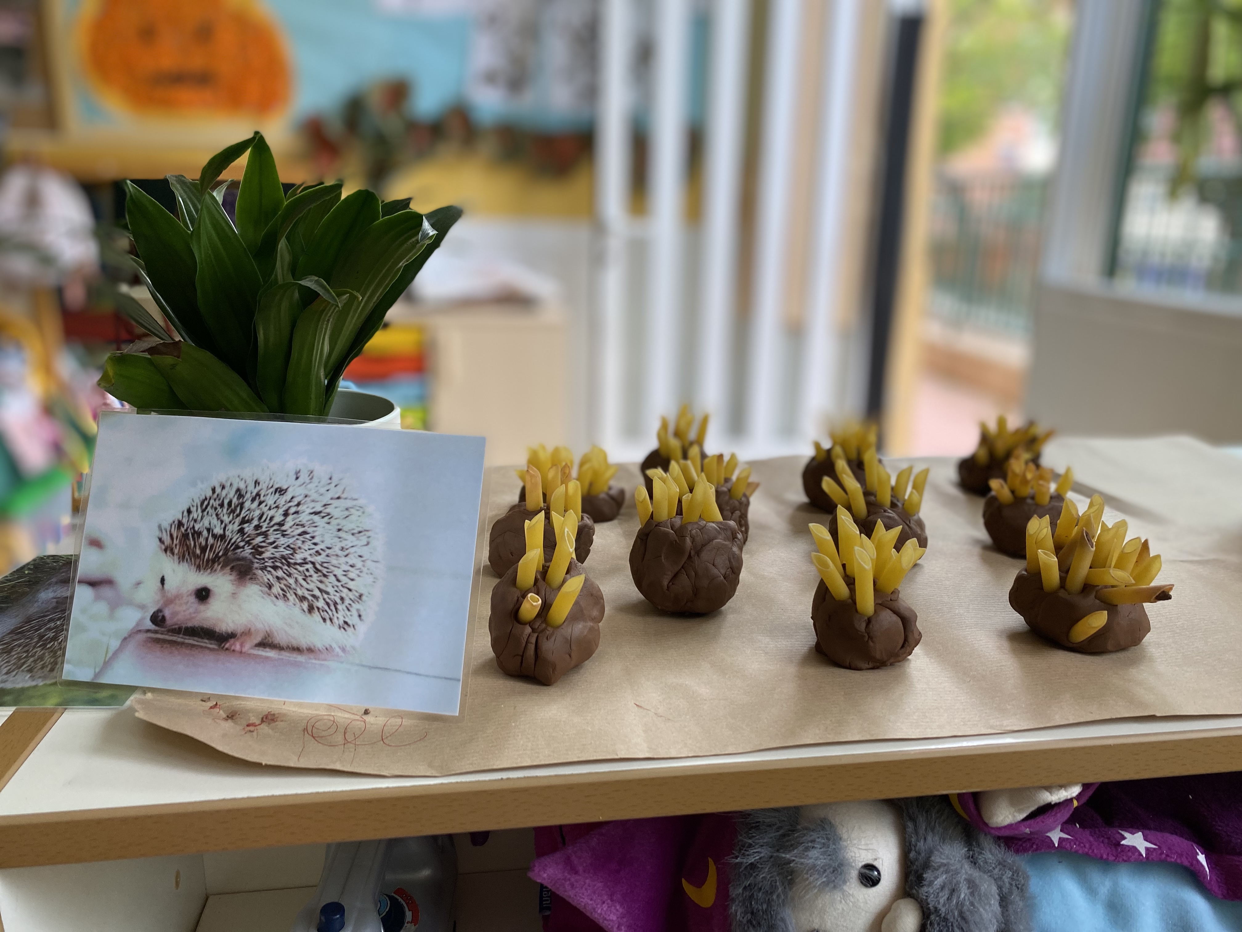 En aquesta ocasió, després d’una estona de manipulació lliure hem començat a afegir-li macarrons. El resultat? Un eriçó!