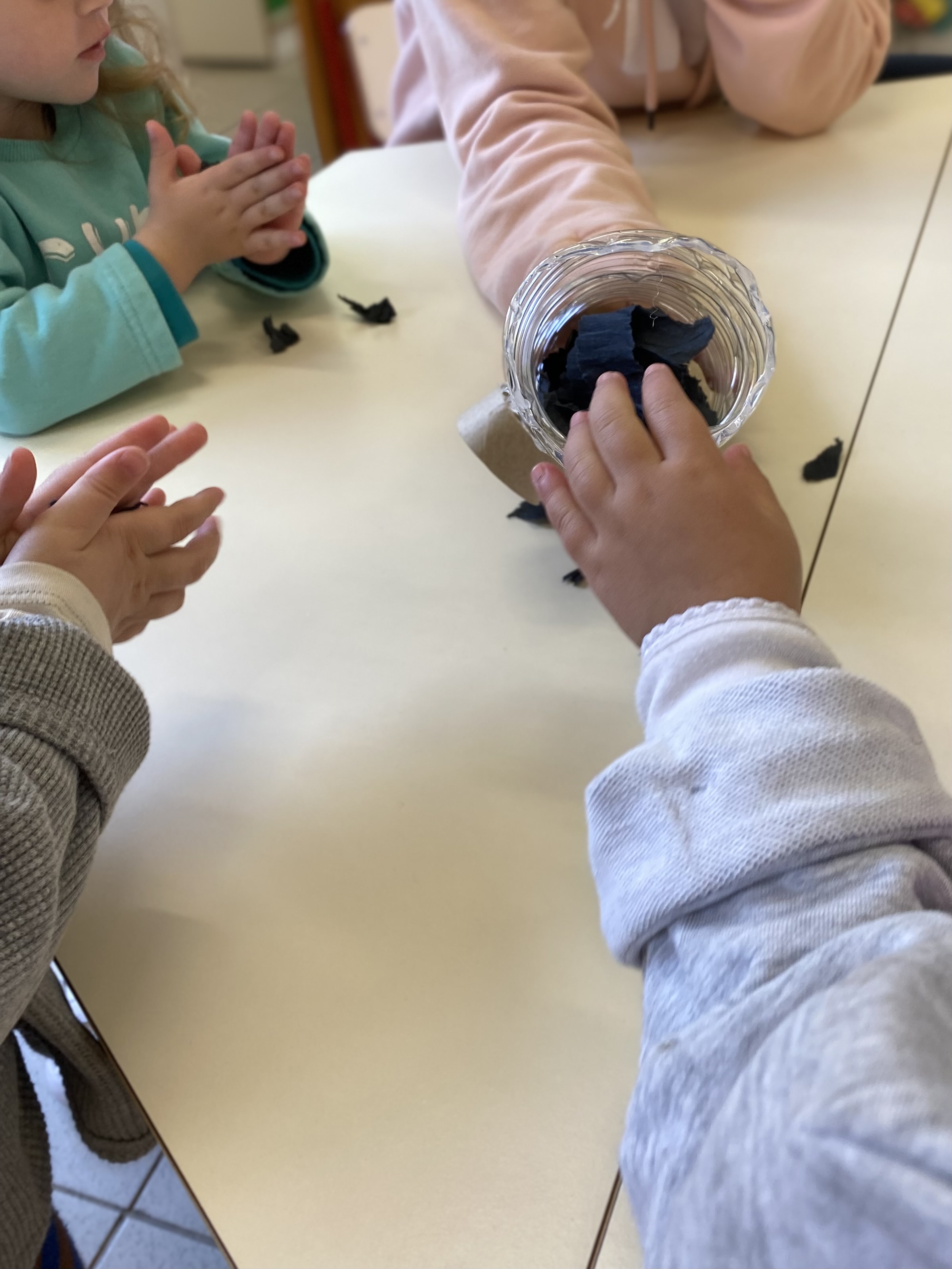 Quan es trenca el paper, les mans adopten un gran agarre trípode que és eficaç i necessari per a escriure i acolorir. La mà no dominant està ajudant en l’esquinçament i fomenta l’assistència adequada per a tasques com sostenir el paper mentre s’escriu, i manejar el paper mentre es talla amb tisores. Per això és també una activitat bimanual important, com comentàvem en un post anterior.