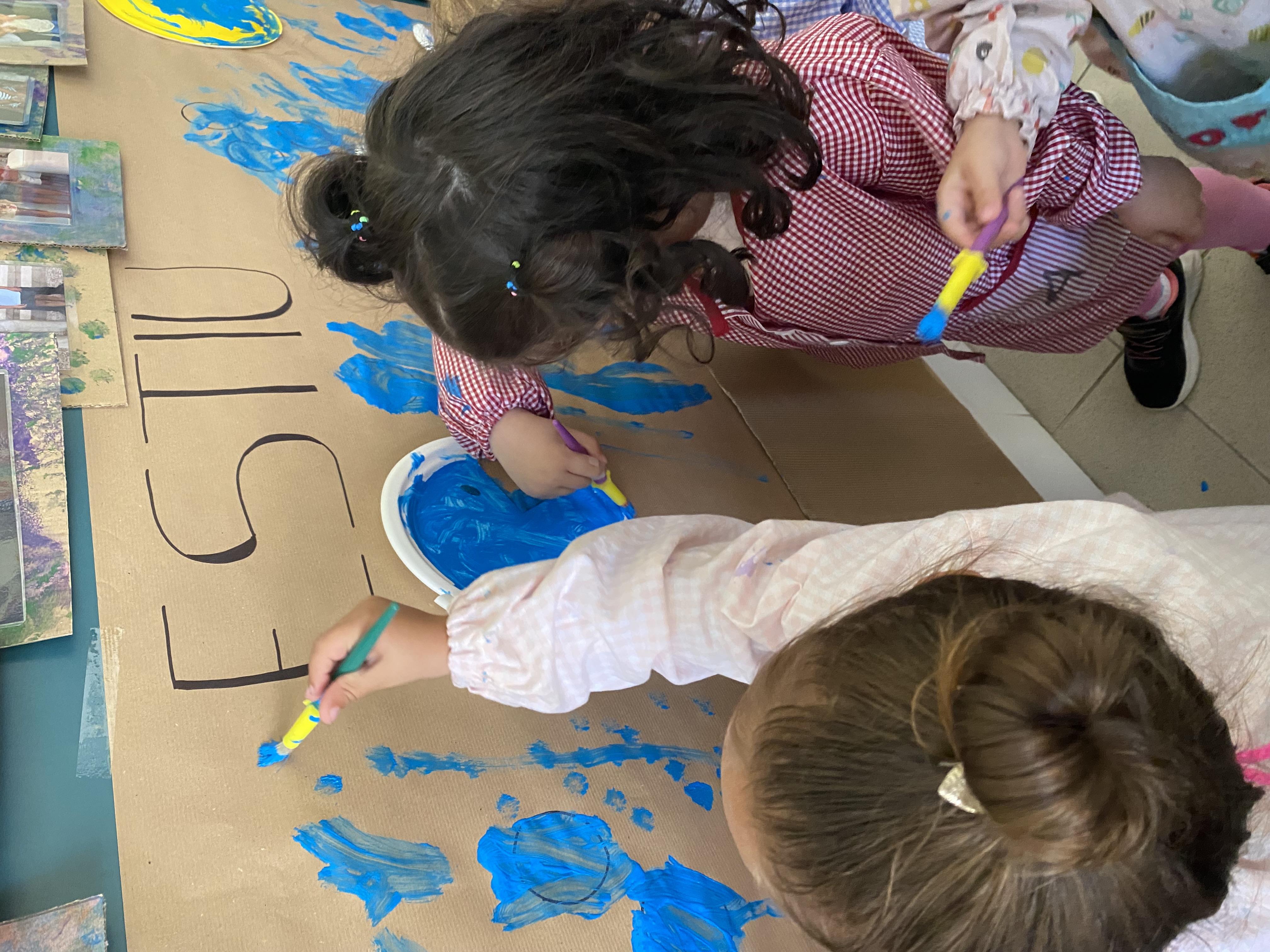 Avui hem pintat el mural de l’estiu inspirat en la mar, treballant el domini del pla vertical i tota la musculatura implicada en aquest procés.