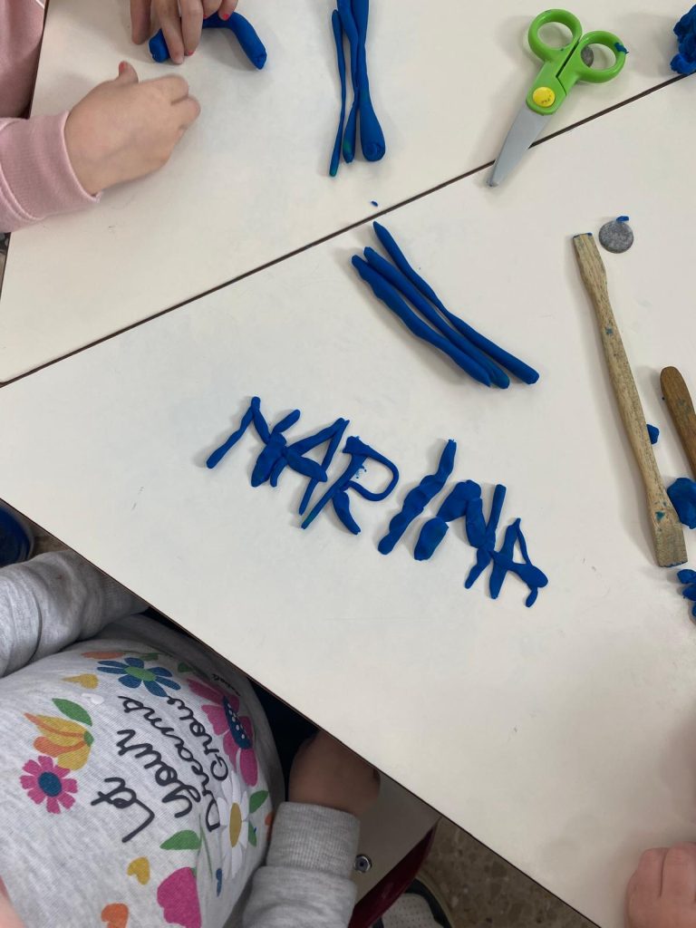 Ya hemos comenzado a introducir sus nombres: en los carteles del aula, en la asamblea, cuando escribimos el nombre en la botella de agua, en sus chaquetas…y, además, realizamos algunas propuestas relacionadas con estos y con sus iniciales (tanto de forma gráfica y como fonética). Una forma natural y significativa de introducir la lectura y la escritura, mediante el reconocimiento del nombre propio y las letras de este, con el componente motivacional que supone el sentimiento de identidad que nos ofrece nuestro nombre. Sin olvidar que a estas edades lo fundamental es desarrollar las habilidades de pre-escritura (como la motricidad fina presente en esta actividad) y trabajar la conciencia fonológica.