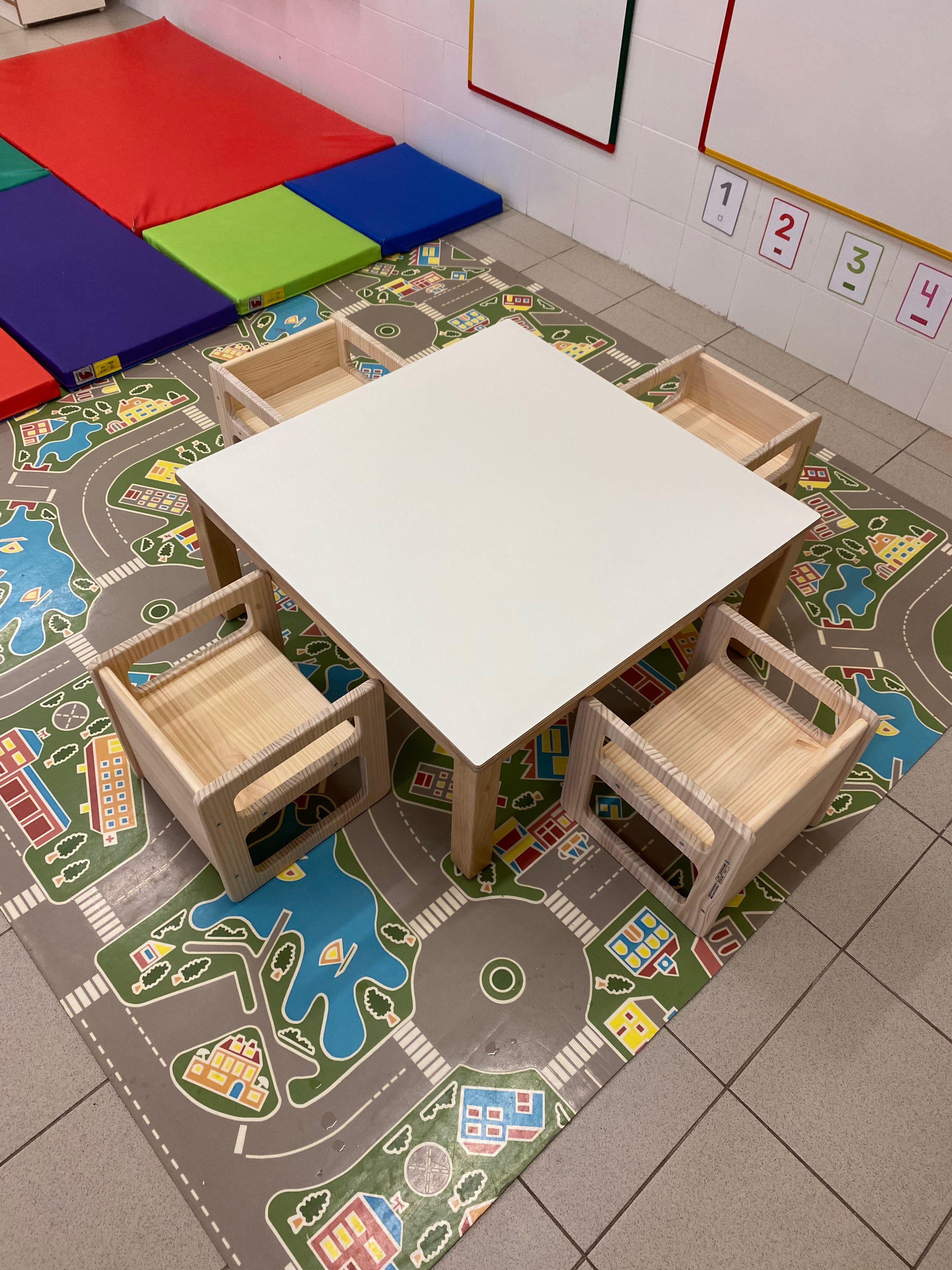 Hem rebut nou mobiliari i alguns jocs com a blocs de construcció, joguets d’exterior, instruments musicals i puzles de fusta que no han encantat. A més, també tenim el triangle i la rampa Pikler.