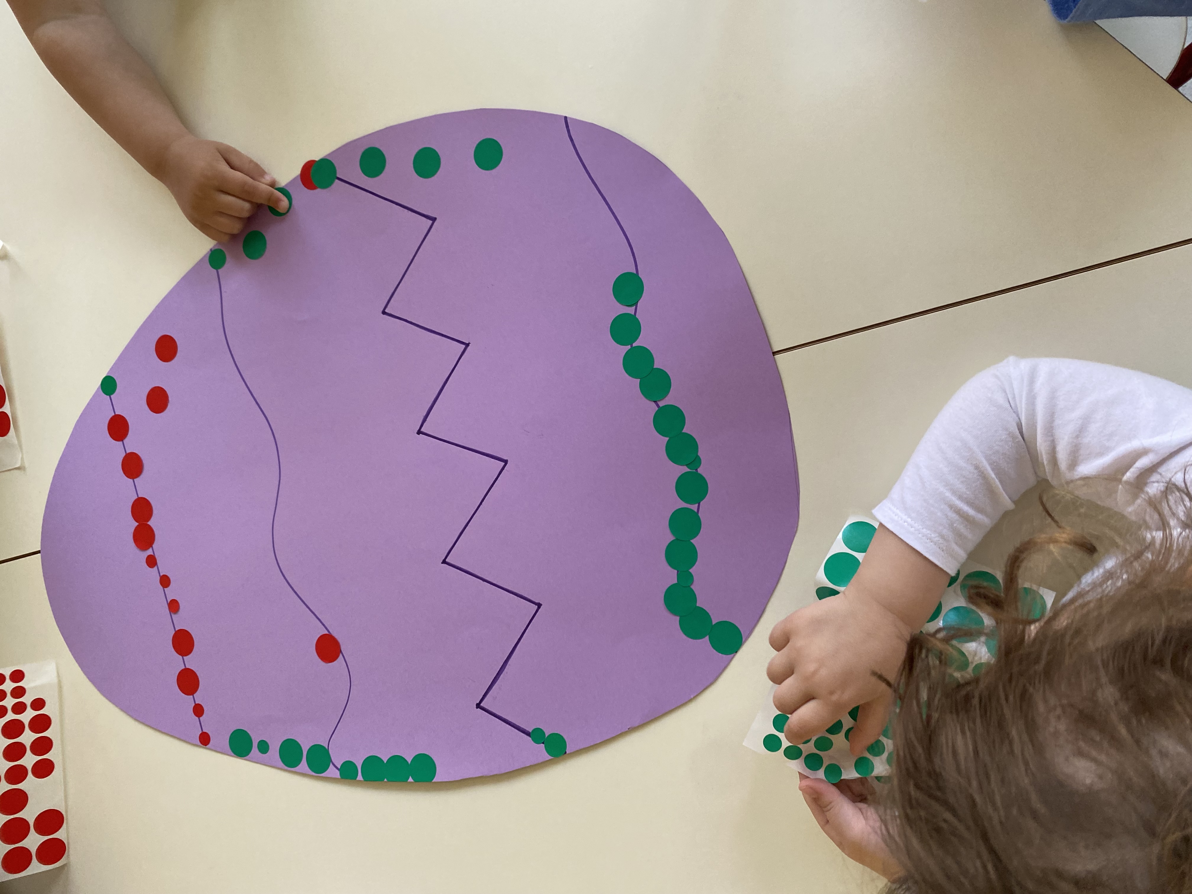 Arriba la pasqua i no podíem deixar de fer ous per continuar treballant la psicomotricitat fina, l’atenció, el treball en equip…Hem decorat un ou resseguint amb gomets aquests traços i per a l’altre ou hem utilitzat la tècnica de l’esquinçat per a fer xicotets papers de diferents colors. A més hem fet servir una poc de confeti que ens va sobrar en carnestoltes.