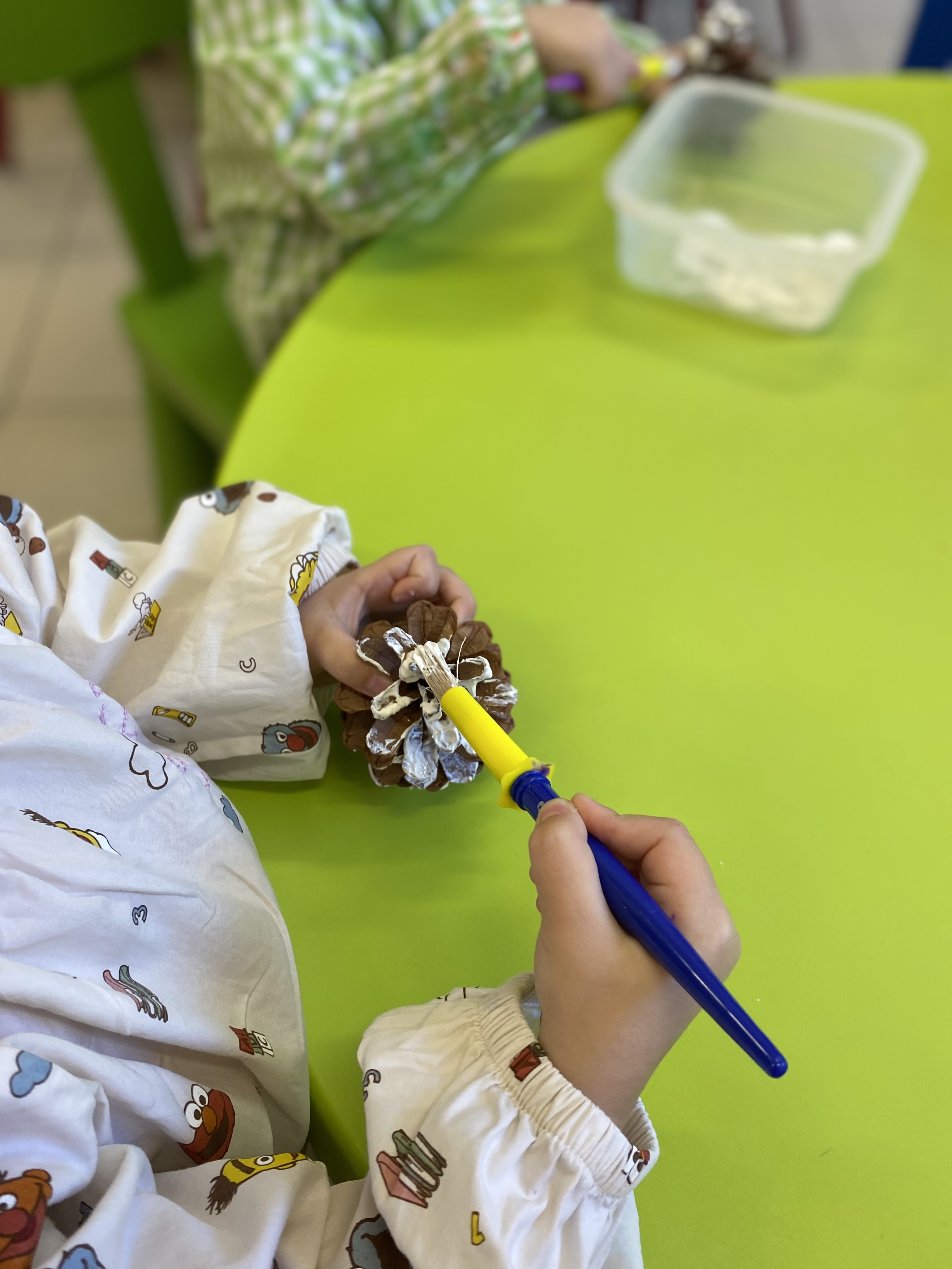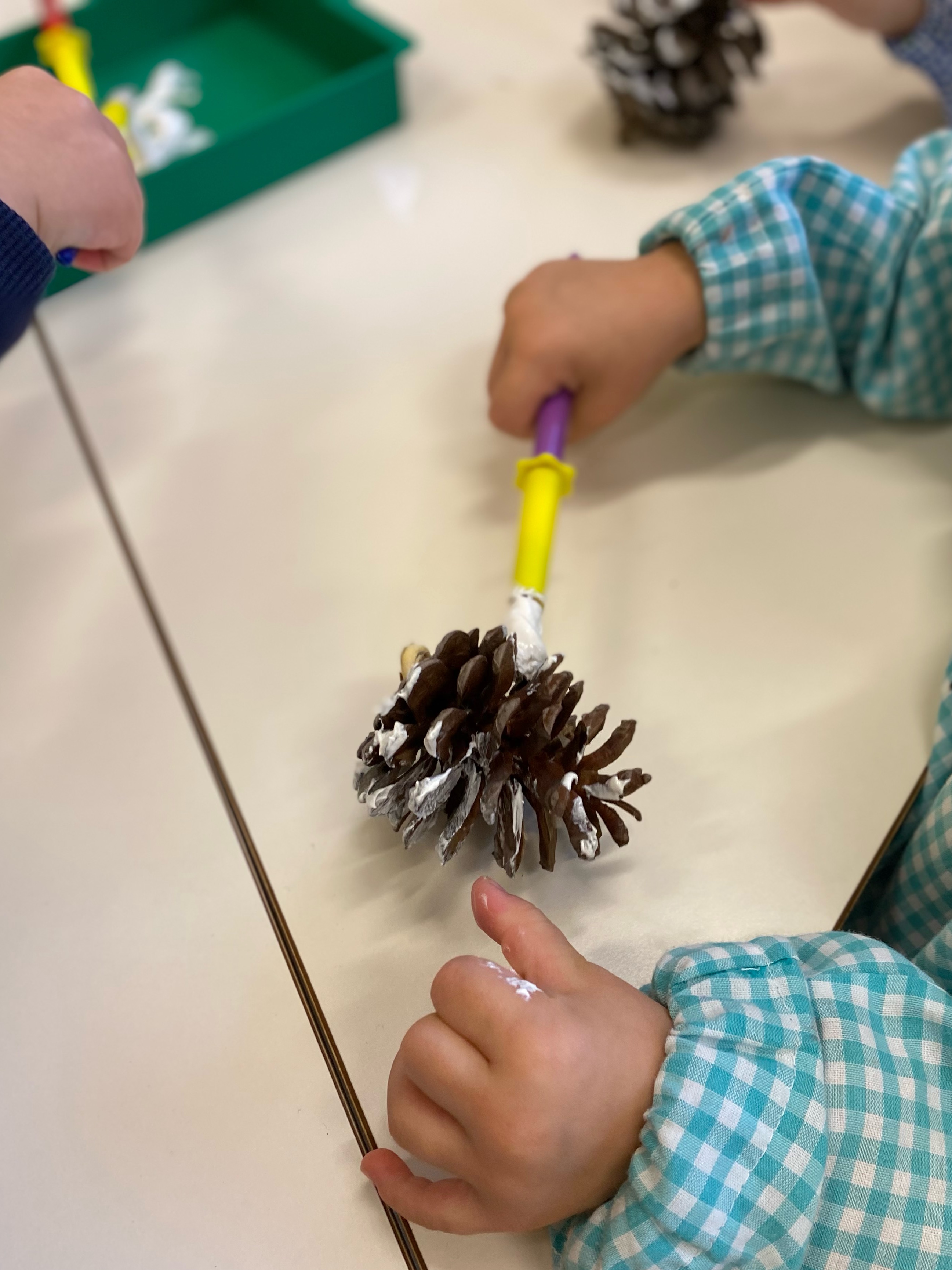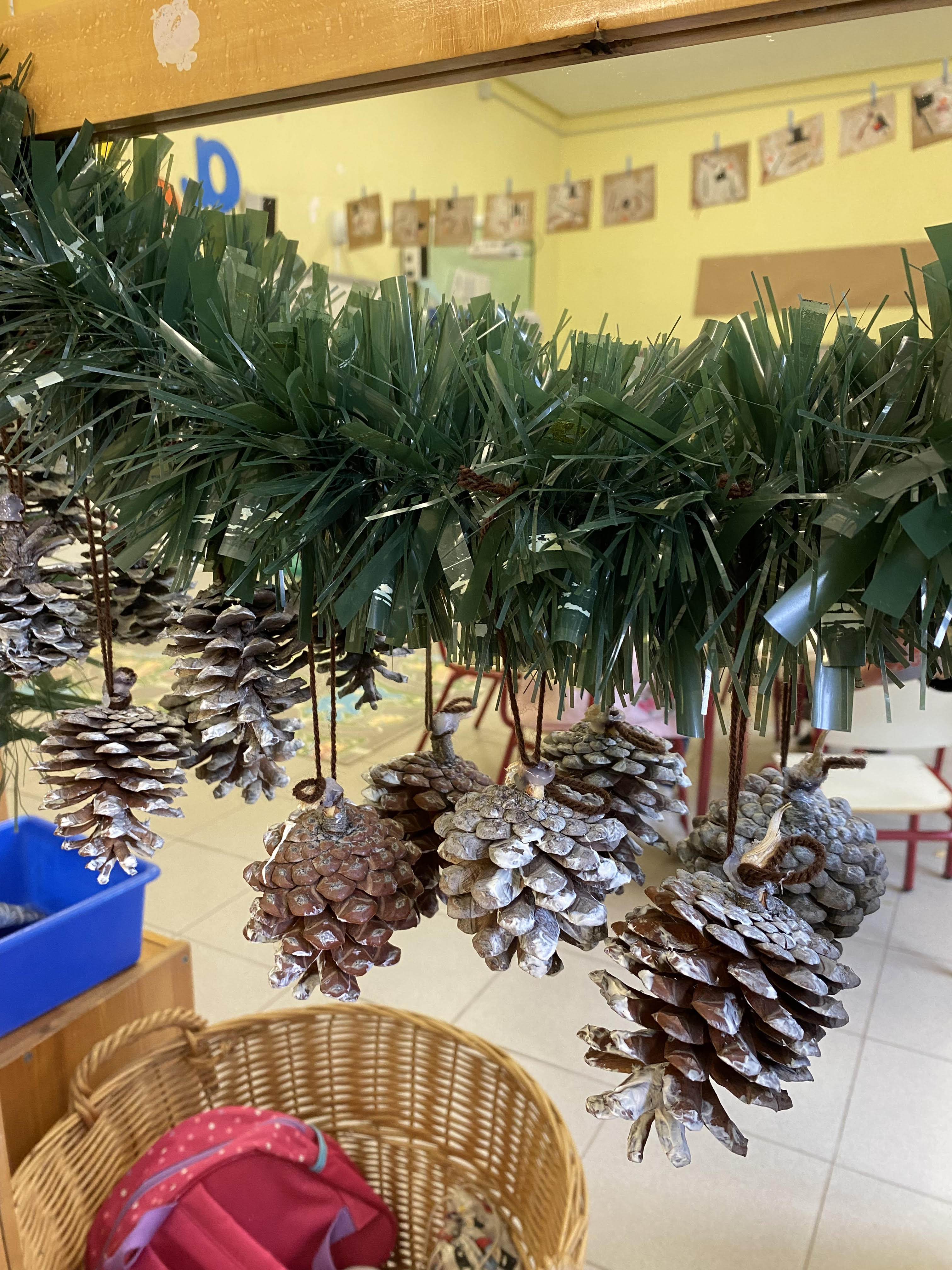 Així ha quedat decorada la nostra classe amb les pinyes nevades: