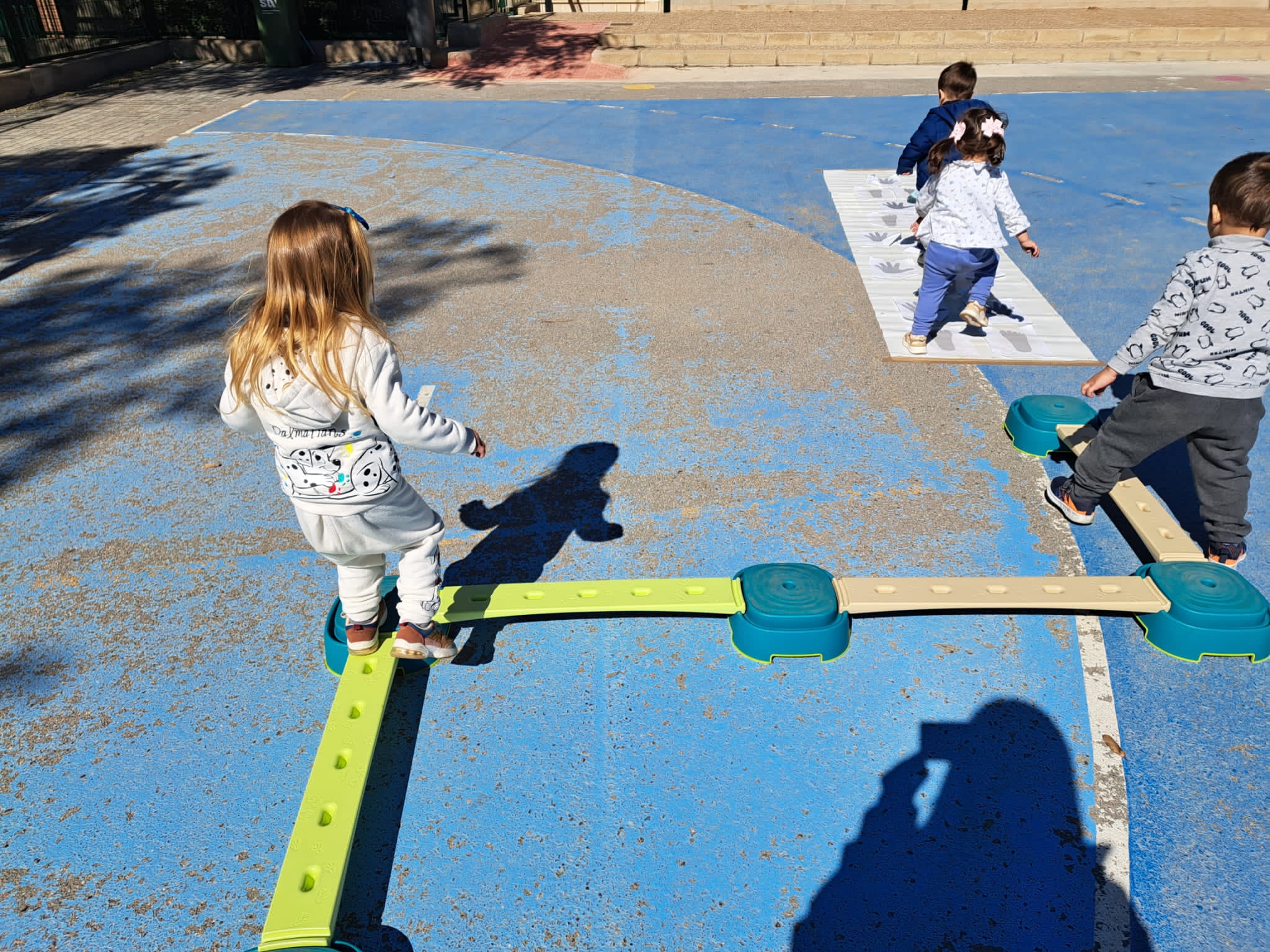 Sessions de psicomotricitat al solet on treballem la motricitat grossa, l’equilibri, la coordinació, el salt, l’esquema corporal…