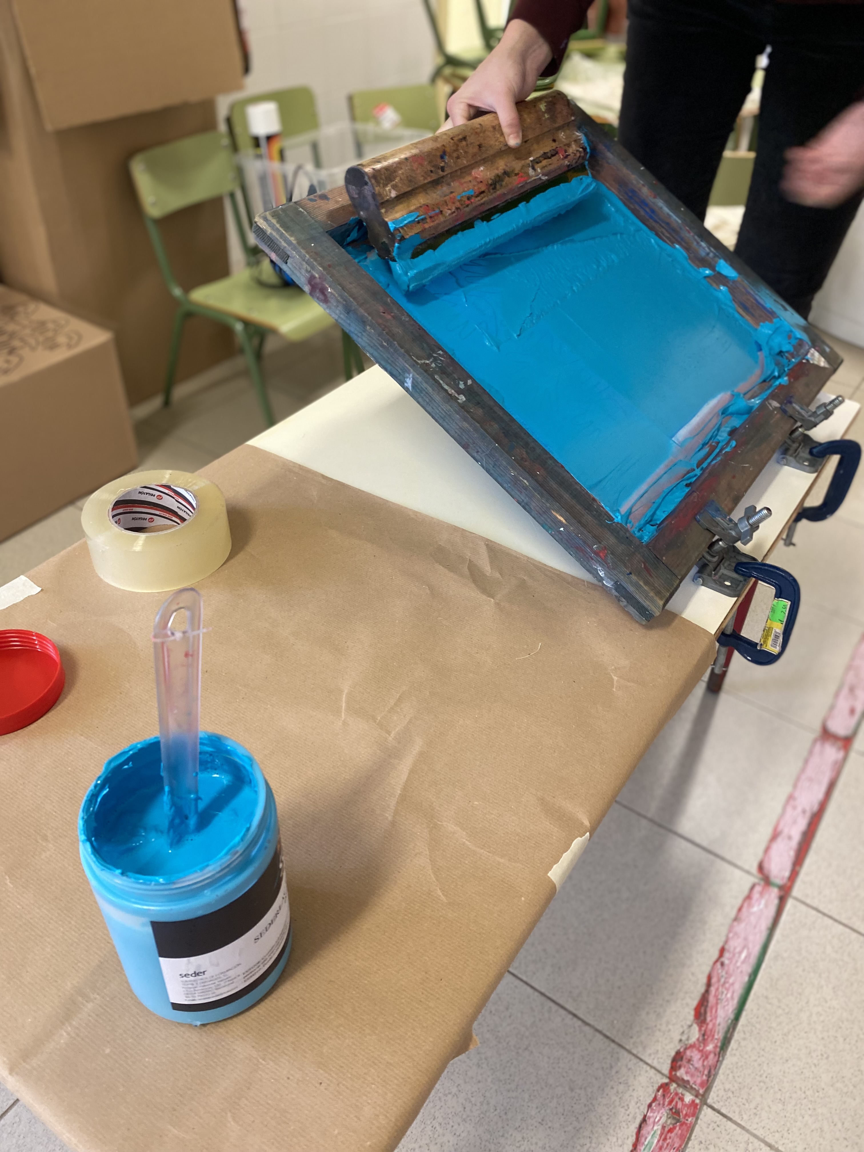 Ja podem ensenyar-vos el taller de serigrafia que realitzem al febrer juntament amb Isabel i la seua filla Isa. Ens va encantar conèixer aquest procés artesanal de serigrafiat i obtenir com a resultat unes bosses amb totes les nostres mans. Sens dubte, un record preciós.