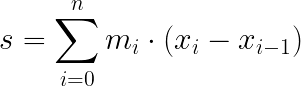 s2= (x1-x0)·f(x0)+(x2-x1)·f(x1)+(x3-x2)·f(x2)+(x4-x3)·f(x3)= (1.5-1)·f(1) + (2-1.5)·f(1.5) + (2.5-2)·f(2) + (3-2.5)·f(2.5) = 0.5 · 1 + 0.5 · 2.25 + 0.5 · 4 + 0.5 · 6.25 = 6.75 u2