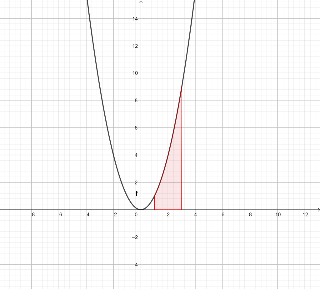Supongamos que queremos calcular el área comprendida entre y=x2, el eje x en el intervalo [1, 3].