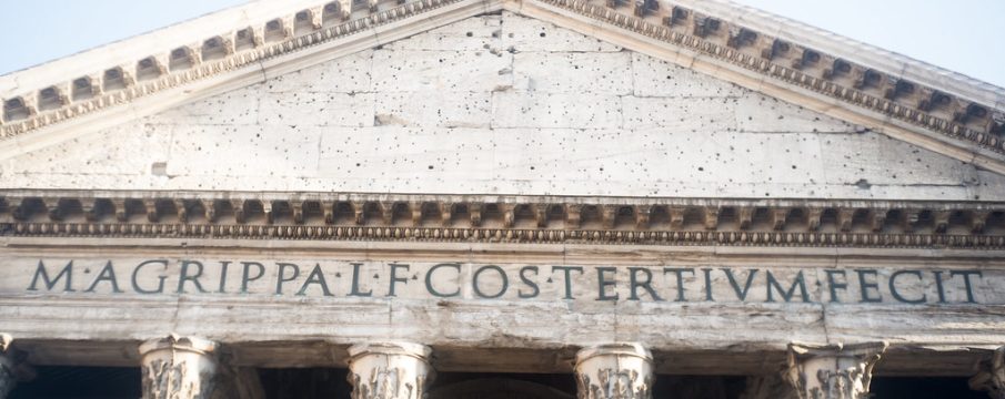 Esta frase se encuentra en el Panteón de Roma y se refiere a la reconstrucción del edificio. Epitome de la ingeniería romana. El espectacular remate del Panteón era la cúpula más grande