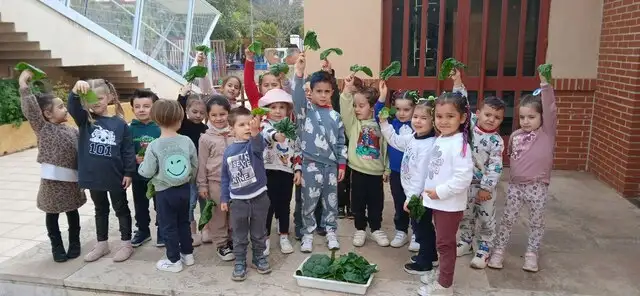 L’alumnat d’Infantil 4 anys ha collit bròquils i espinacs que han cuidat amb durant les últimes setmanes. Després de recollir-los, els han portat a Elena, la nostra cuinera, perquè els puga incorporar als menús del menjador escolar. És una gran satisfacció veure com el treball fet a l’hort arriba fins als plats del menjador!
