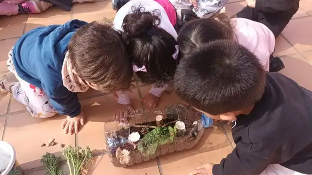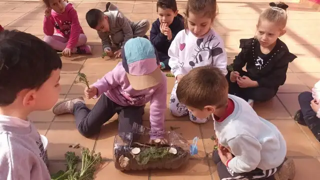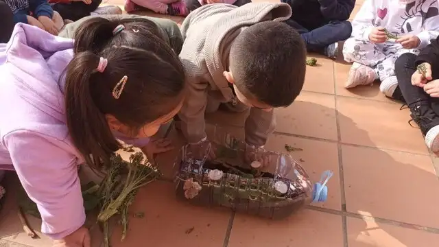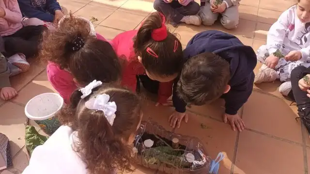 A més a més, l’alumnat d’Infantil 4 ha viscut una experiència a partir d’un descobriment fet a l’hort. Mentre observaven les plantes i la terra, van trobar dos caragols que ràpidament van despertar la seua curiositat.Després de parlar-ne a classe, els xiquets i xiquetes van decidir cuidar-los i preparar-los una nova casa. Primer, van observar-los amb molta atenció i van pensar quines coses necessiten els caragols per viure bé: terra humida, fulles, petites branquetes i un poc d’aigua. Amb tot això, van construir un terrari. Els caragols també ja tenen nom! Després de diverses propostes, el grup va decidir anomenar-los Arcoiris i Solet.