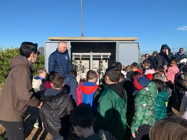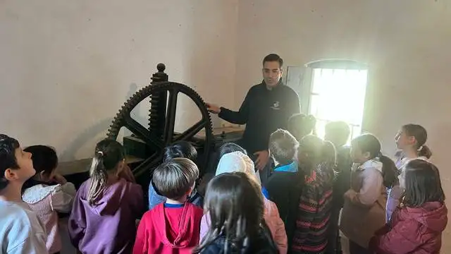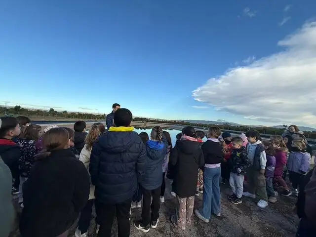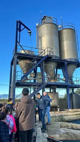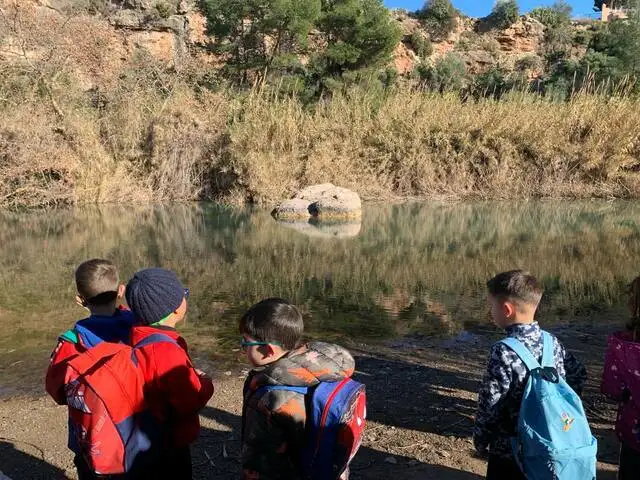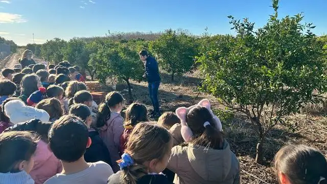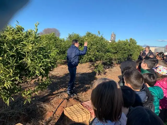 Hemos podido visitar el río Millares y el azud, con la entrada de agua por “La Gola” para continuar su camino por la Acequia Mayor y así, llegar a la balsa de riego: una balsa de agua enorme donde añaden nutrientes y que, mediante bombas, la hacen llegar a nuestros huertos. Para verlo “in situ”, nos hemos dirigido a un huerto de naranjos. Allí hemos visto, de primera mano, el sistema de regadío “por goteo”: una forma de regar que no derrocha el agua puesto que, como nos han explicado, es un bien escaso y esencial para la vida del planeta.