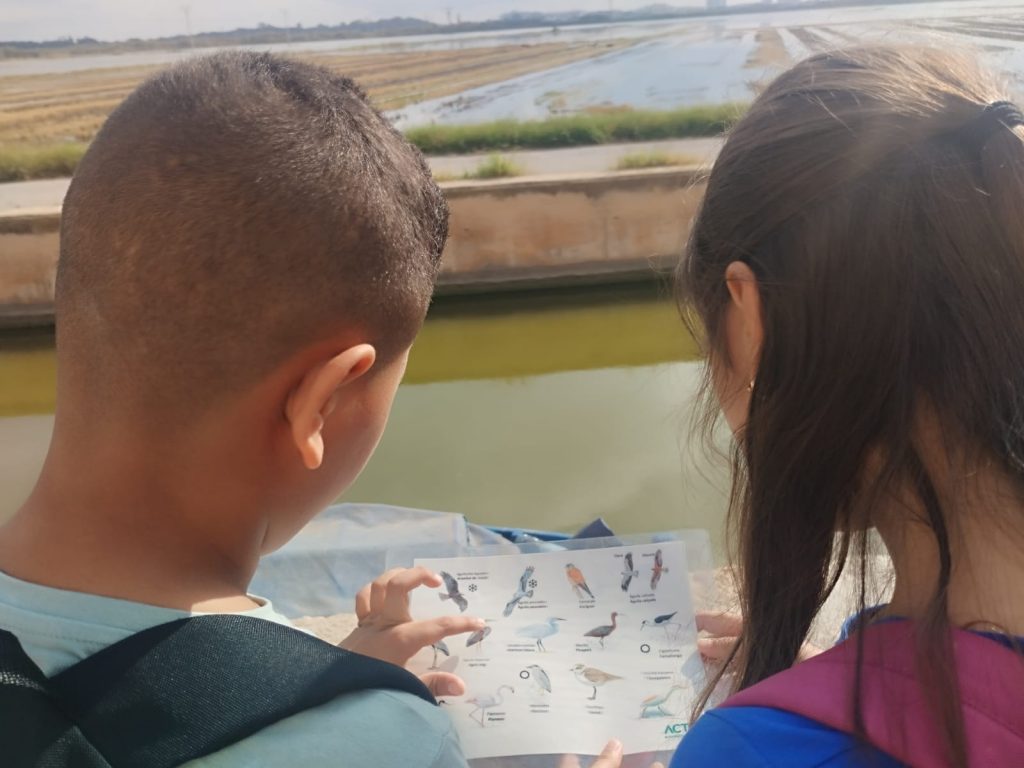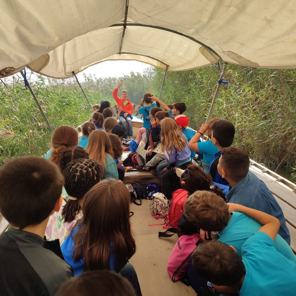 Hemos recorrido el pueblo de El Palmar conociendo y aprendiendo sobre la lonja, la barraca valenciana y los arrozales. Después, hemos dado un paseo en barca donde hemos divisado un montón de aves, averiguado su nombre y conocido curiosidades sobre ellas.