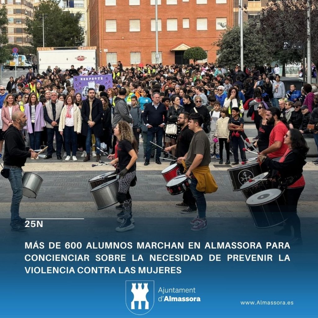 El 25 de novembre és el dia Internacional de l’eliminació de la violència contra les dones. Des del centre treballem en la conscienciació de la importància de la No Violència des dels primers cursos. A més de les activitats realitzades a les aules, els aules de tercer cicle han participat a la marxa organitzada per l’Ajuntament d’Almassora.