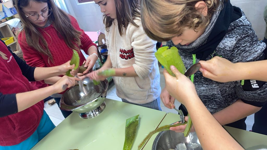 El dimecres 29 d’octubre vàrem anar a fer les olives de l’olivera del parc. Una part de les que vam recollir les vam portar a la cooperativa de Beniatjar per a fer oli i l’altra part les vam pujar a l’escola per a elaborar olives trencades. En primer lloc, les vam pesar per veure quants quilos teniem, després i durant dues setmanes les vam rentar en aigua unes quantes vegades per llevar-los l’amargor. A continuació vam anar xacant-les poc a poc amb una maça de fusta i finalment les vam adobar en aigua, sal i herbes, tècnica també coneguda com salmorra. Aquest procés permet una correcta conservació i maceració de les olives.