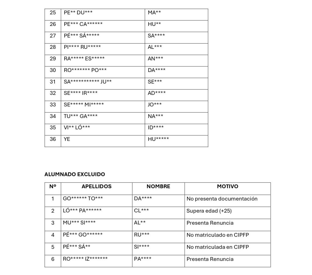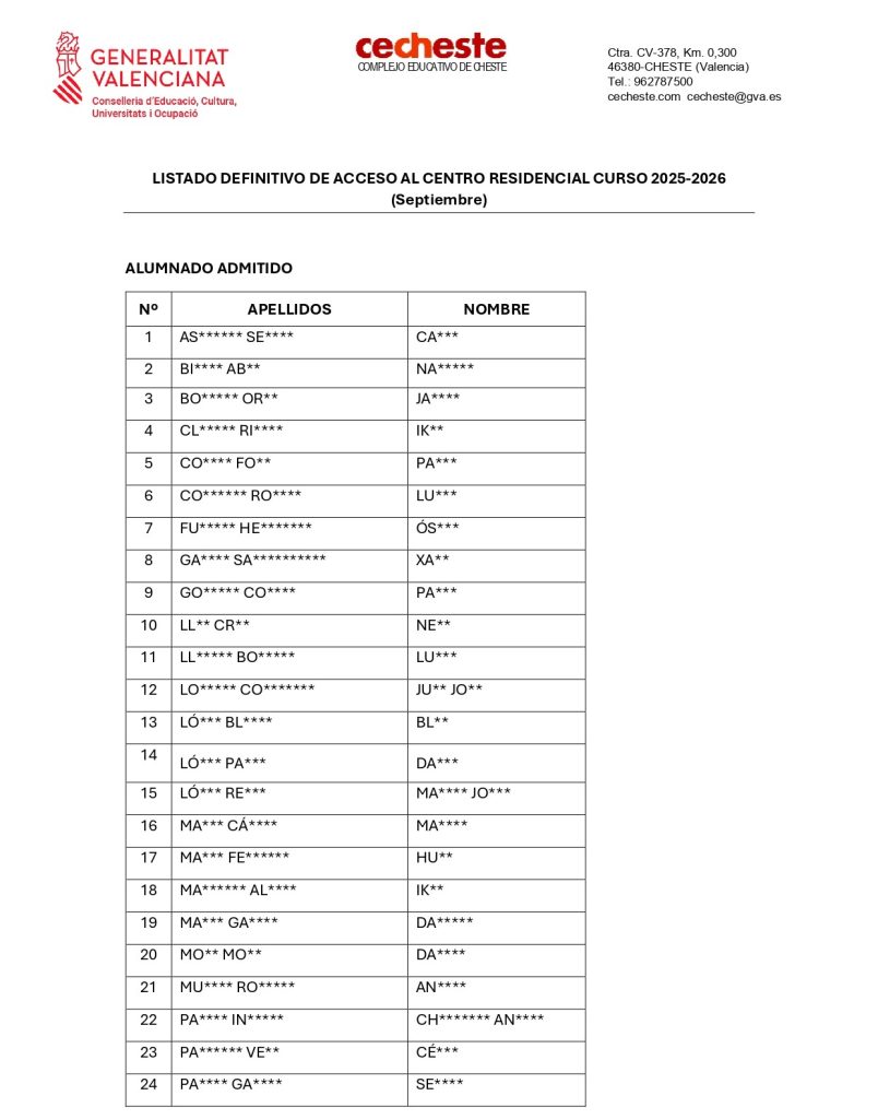 LISTADO DIFINITIVO DE ACCESO AL CENTRO RESIDENCIAL CURSO 2025-2026 (Septiembre)