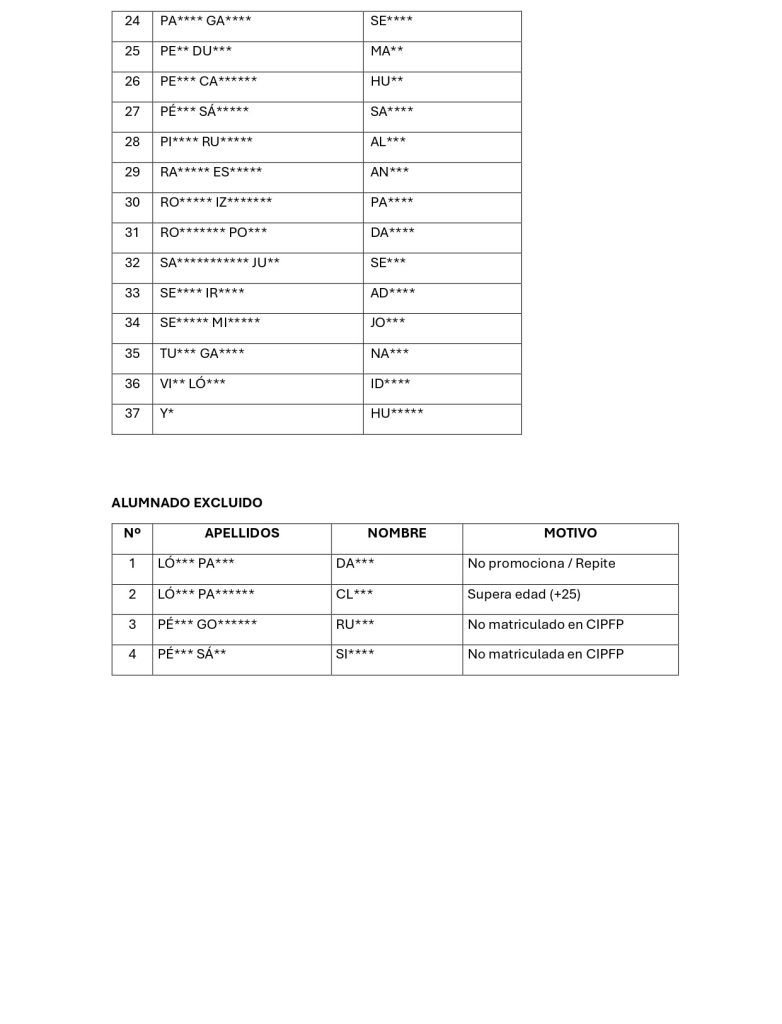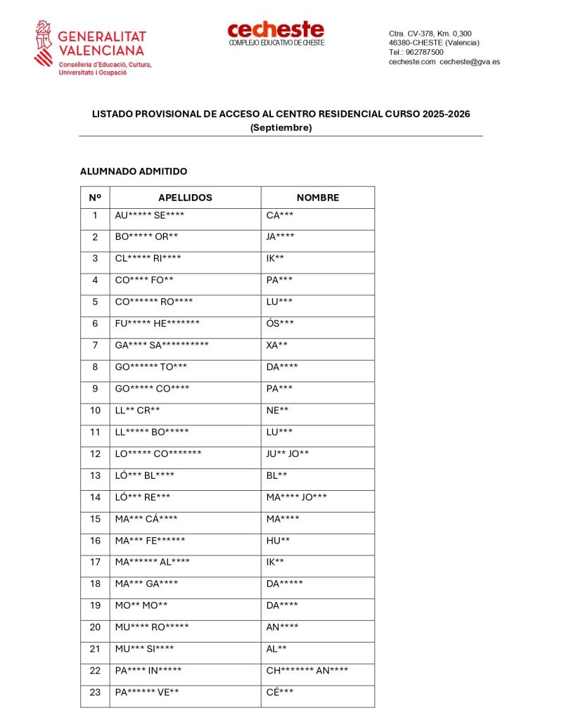 LISTADO PROVISIONAL DE ACCESO AL CENTRO RESIDENCIAL CURSO 2025-2026 (Septiembre)