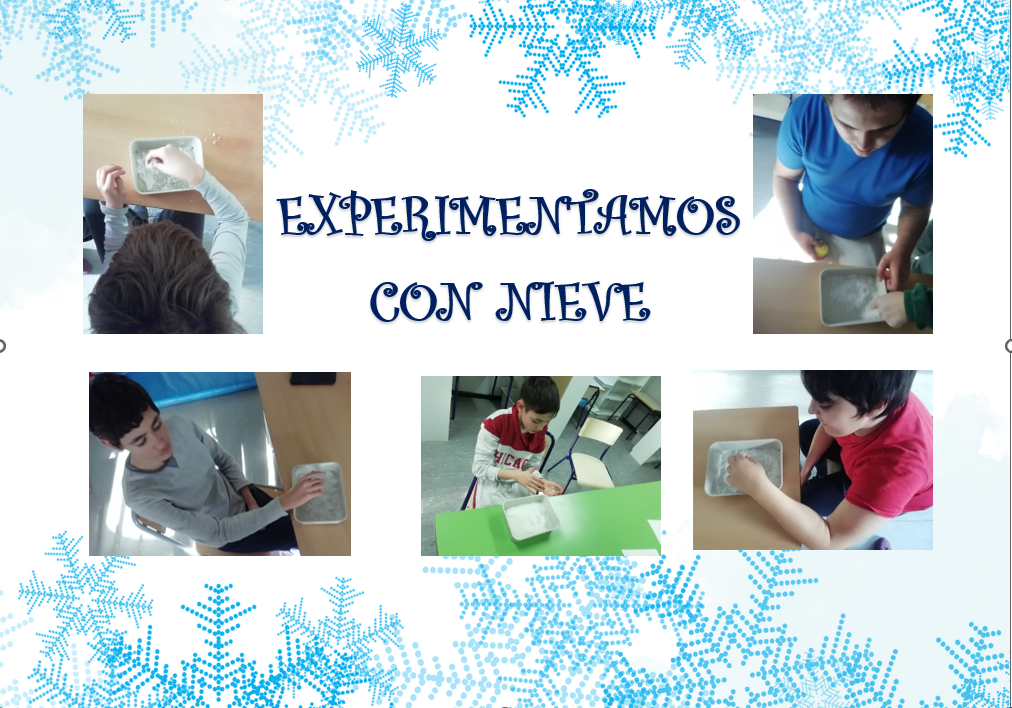 En el aula 1 estamos trabajando el invierno por eso hemos hecho nieve. Ha sido muy divertido porque hemos podido observar el cambio del material y después disfrutar con una nueva textura jugando con ella.