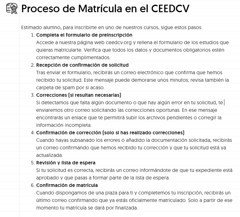 Cuando la secretaría del centro formalice la matrícula, la persona interesada recibirá por correo electrónico el resguardo de matrícula. Solo en este momento se considerará matriculado/a.