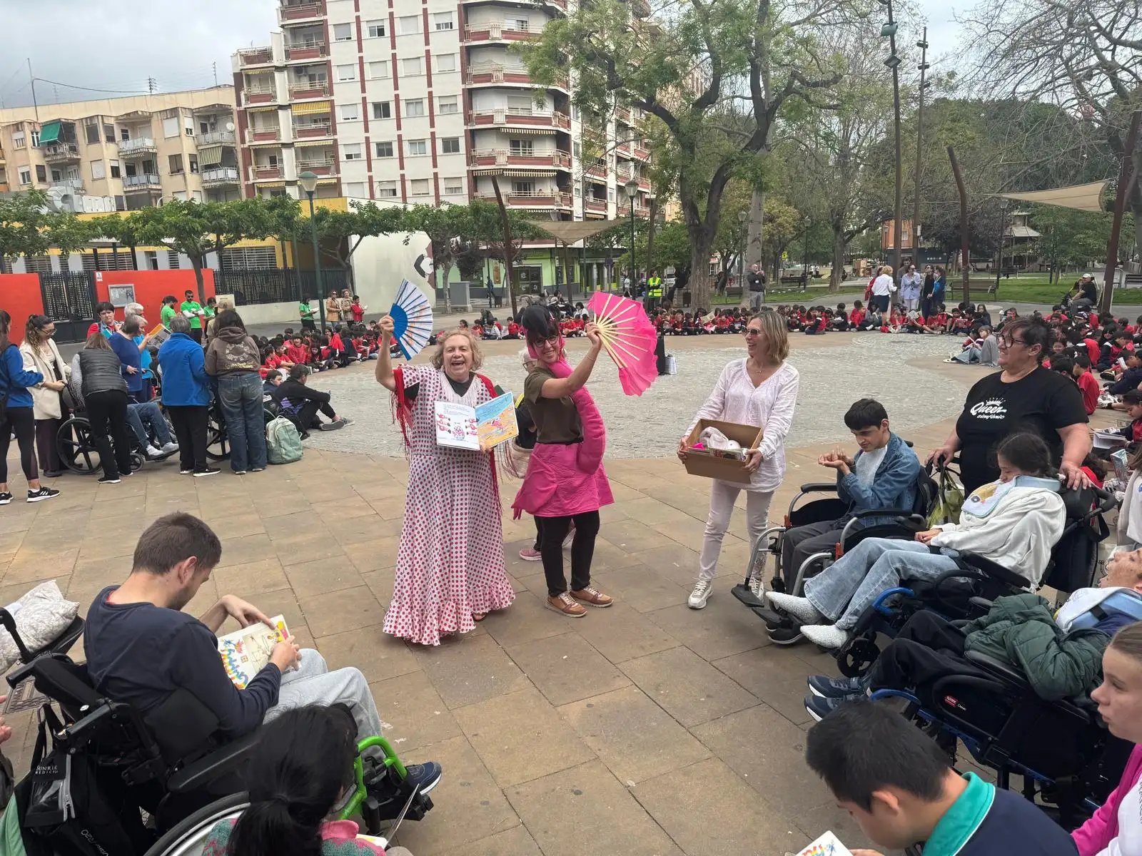 Per celebrar el dia del llibre, les biblioteques de Gandia han convocat a totes les escoles per a compartir una estona llegint en diferents espais públics de Gandia. Al Parc Jardinet hem estat amb dos grups: uns han mirat contes sense paraules i altres han vivenciat un conte representat per la tutora i educadora de l’aula.