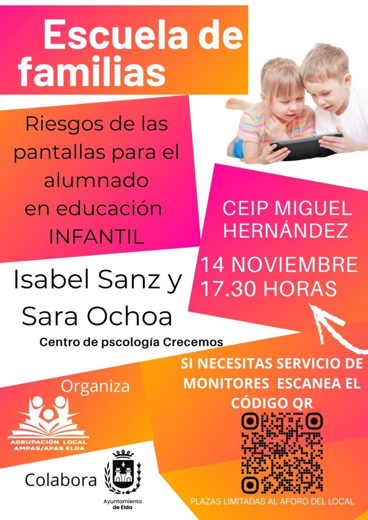 Vuelve la escuela de familias organizada por las AMPAS, con charlas de distinto contenido, en varios centros educativos de Elda. Aquí os dejamos la información, si pincháis en la foto os dirige al enlace para apuntaros. Gracias