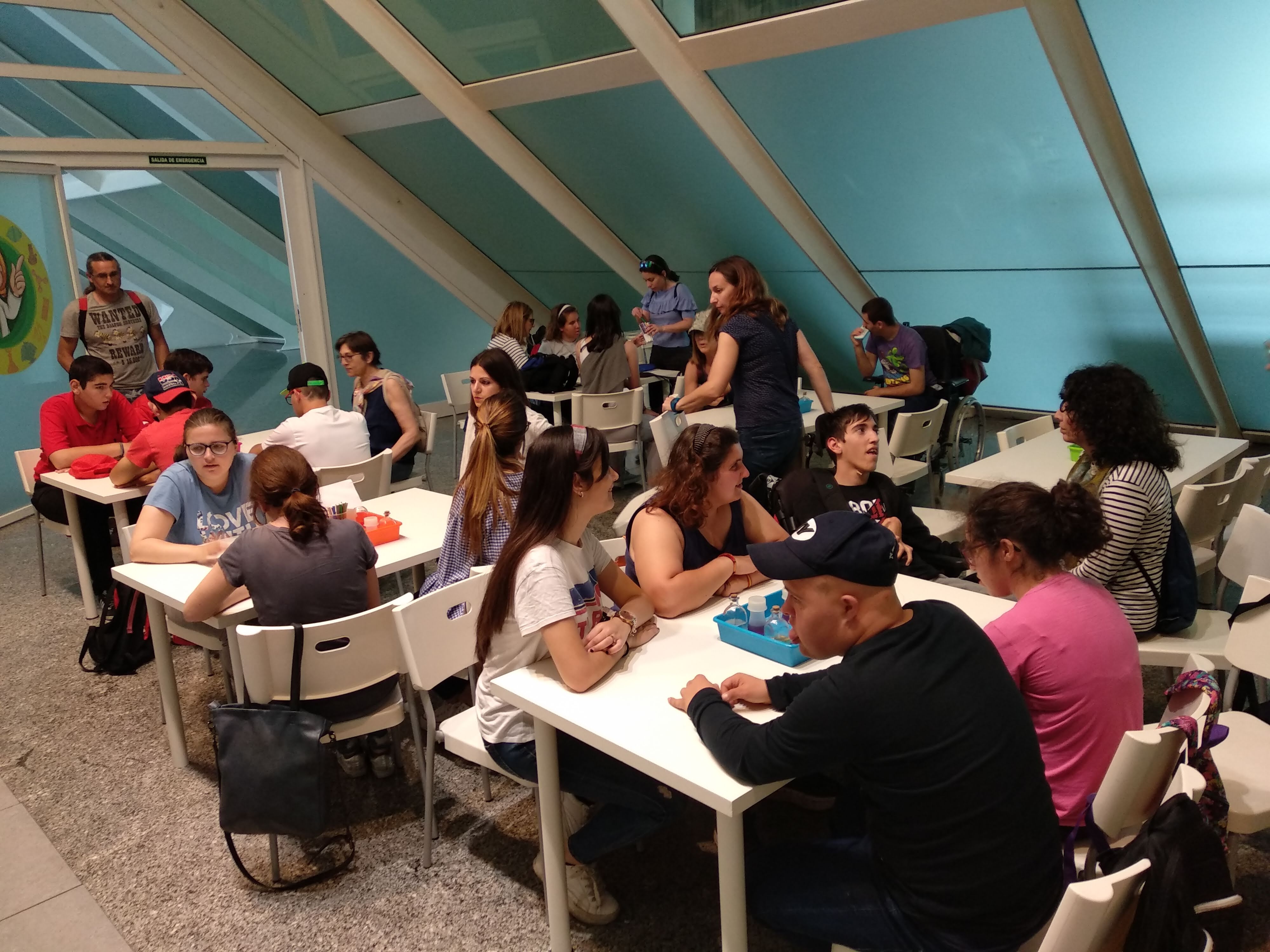 Un año más realizamos una excursión de fin de curso para nuestros alumnos de la TVA, este año nos hemos ido a Valencia a visitar el hemisfèric y el museo de las artes y las ciencias. Pudieron disfrutar de una película en 3D sobre dinosaurios en el Hemisfèric. Todos ellos lo pasaron estupendamente, estuvieron muy atentos y el hecho de llevar unas gafas en 3D y unos auriculares tan peculiares les hizo sentirse parte de la película, algunos se relajaron tanto que llegaron a dormirse durante la filmación de ella. Después acudimos al museo de las artes y las ciencias donde estuvimos visitando el museo y sus alrededores, en donde alguno de nuestros alumnos disfruto de un refrescante paseo por el agua, mientras esperabamos a que se hiciera la hora de entrar al taller que nos habían preparado para nosotros. Este taller consistía en diversos experimentos, muy bien explicados por las monitoras que allí se encontraban. Todos los alumnos estuvieron muy atentos a las explicaciones que les hicieron y se sorprendieron de todas las cosas que aprendieron durante ese taller.