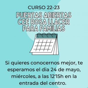 El próximo miércoles 24 de mayo celebraremos nuestra jornada de puertas abiertas. Se realizará un visita por las instalaciones del centro y podréis conocer de primera mano cómo trabajamos.