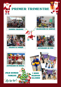 A lo largo de este primer trimestre nos lo hemos pasado genial… Hemos hecho excursiones, salidas al parque, celebraciones varias como: cumples, Halloween, el día de la música, el día de la diversidad y muchas cosas más como os vamos a enseñar. Nos toca despedir este trimestre… Por eso os deseamos feliz navidad y feliz 2024. ¡Nos vemos en enero!