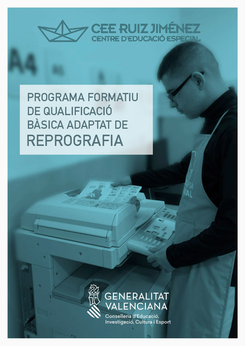 És una modalitat de Programa Formatiu de Qualificació Bàsica adaptada a persones amb necessitats educatives especials permanents en el qual l’alumnat aprén a recepcionar i despatxar encàrrecs de reprografia i papereria; a preparar els materials i equips i realitzar la reproducció o a realitzar operacions d’acabat en reprografia.