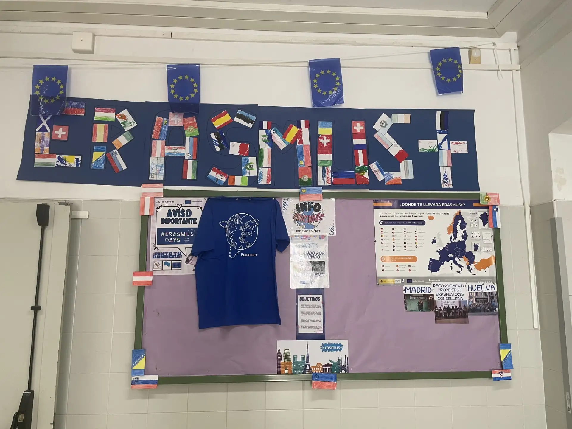 La Consellería de educación, cultura, universidades y ocupación ha reconocido en nuestro centro el Proyecto KA122 de Erasmus +. Para celebrar la semana de Erasmus Days, la comisión de Erasmus ha querido realizar un mural con las letras de Erasmus y las banderas de los países europeos pintados por todo el alumnado del centro.