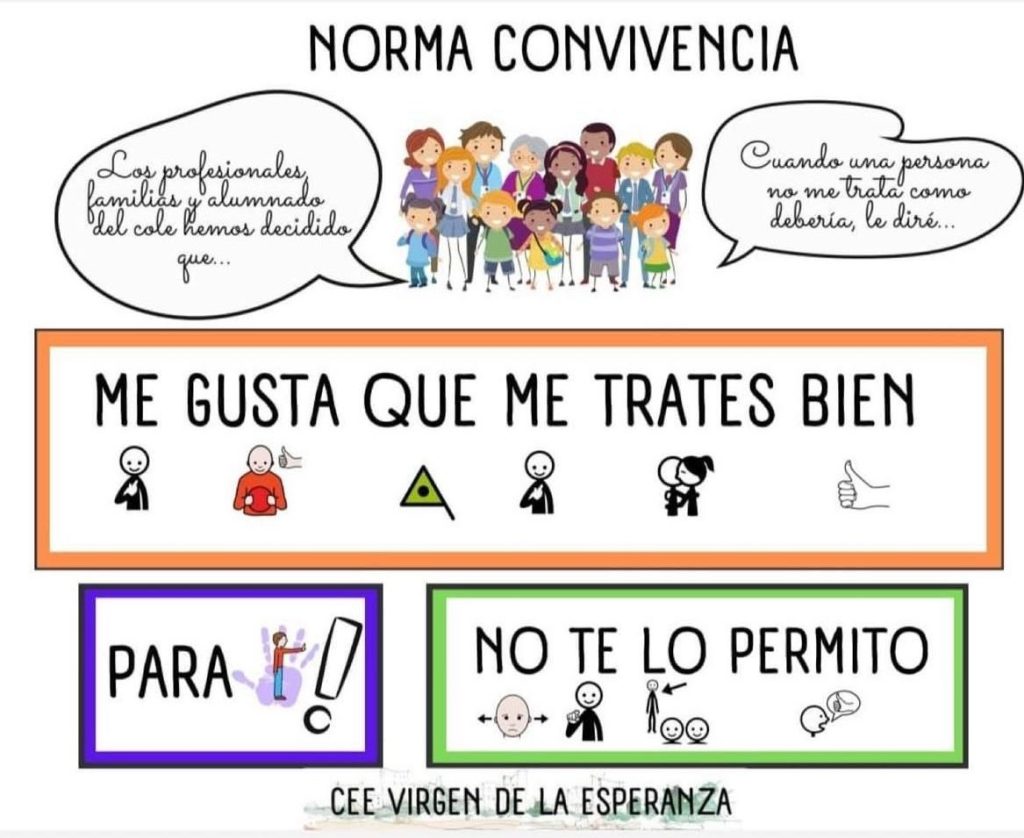 Por este motivo y después de mucho esfuerzo, toda la comunidad educativa (profesionales, alumnado y familias), establecimos nuestra norma: “ME GUSTA QUE ME TRATES BIEN, PARA, NO TE LO PERMITO”.