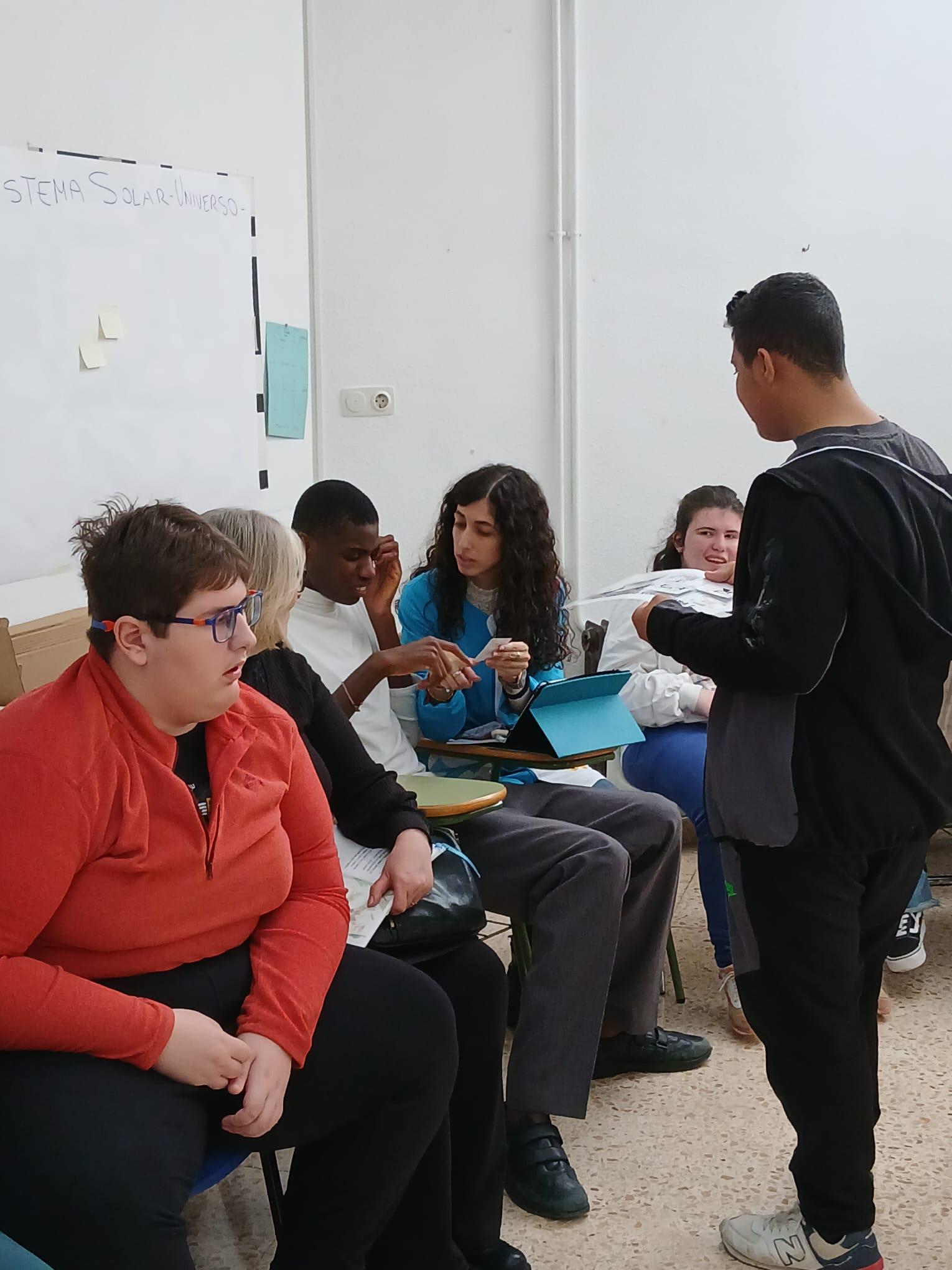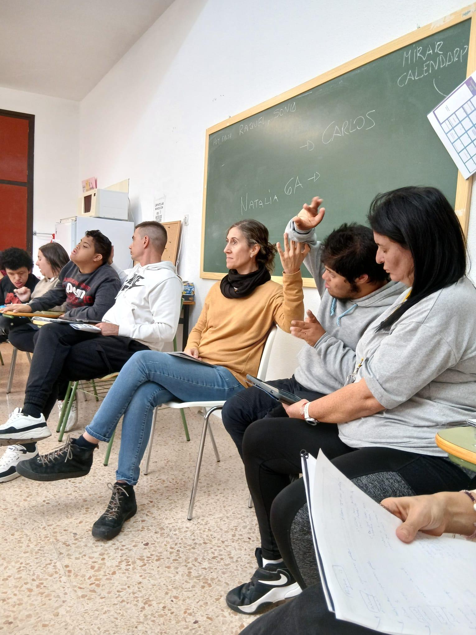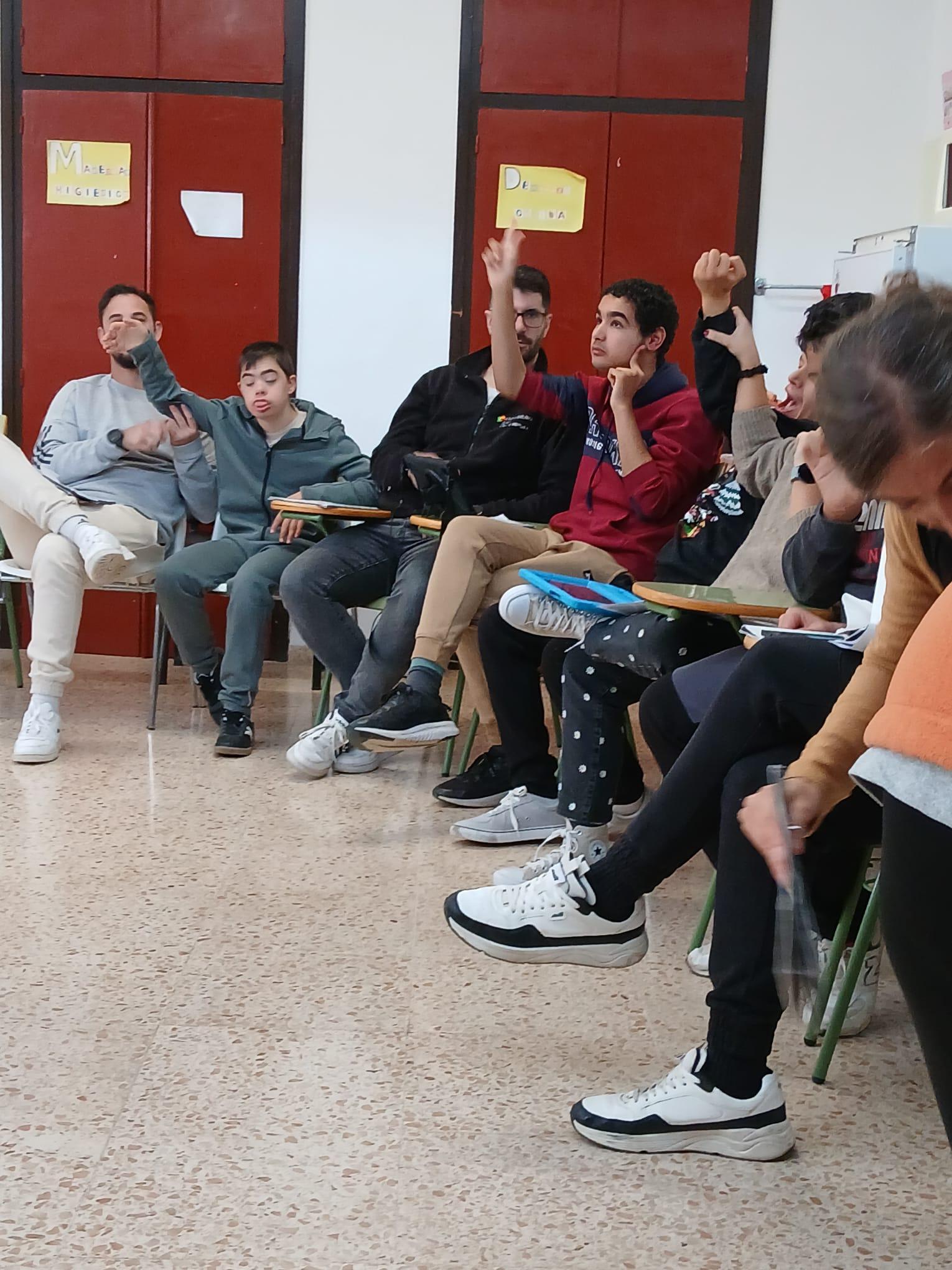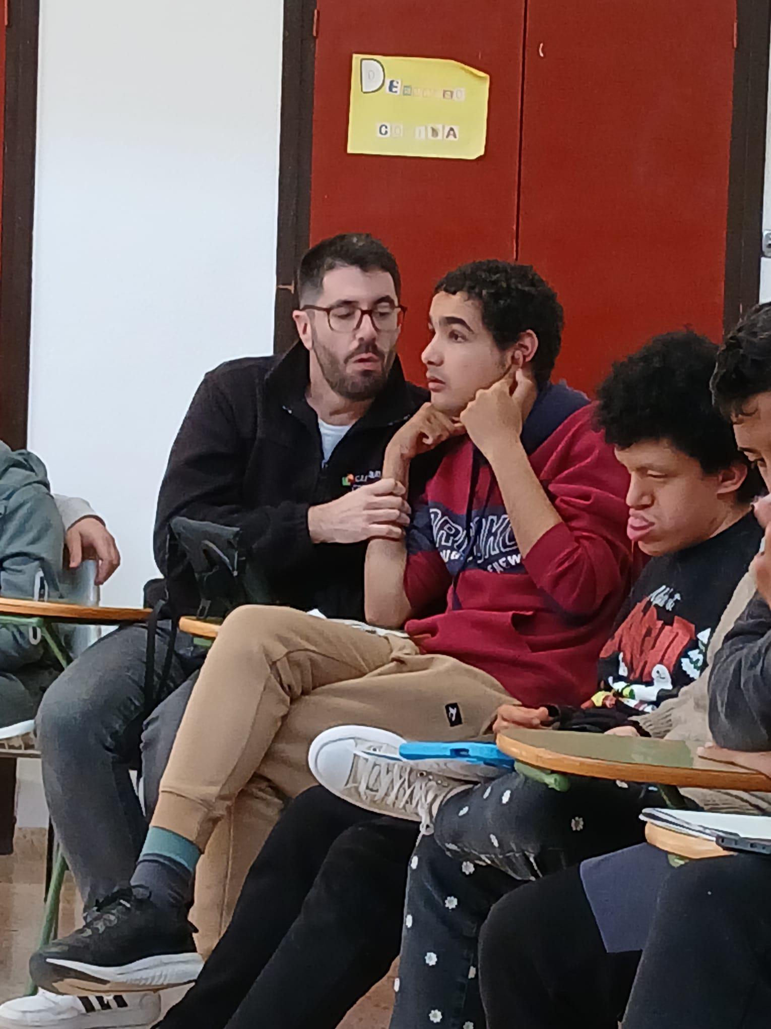 Los alumnos y el personal educativo del centro entran en la sala. La expectación y la sorpresa de apodera de todos y se refleja en sus caras; es la primera vez que se ven todos juntos sentados en círculo dentro de una misma aula. Contrariamente a lo que se pudiera pensar, se mantienen bastante en silencio, la disposición de las sillas ha creado un ambiente de respeto que pretende favorecer la escucha activa. En el aire hay una mezcla de curiosidad e incertidumbre por lo que está a punto de suceder.